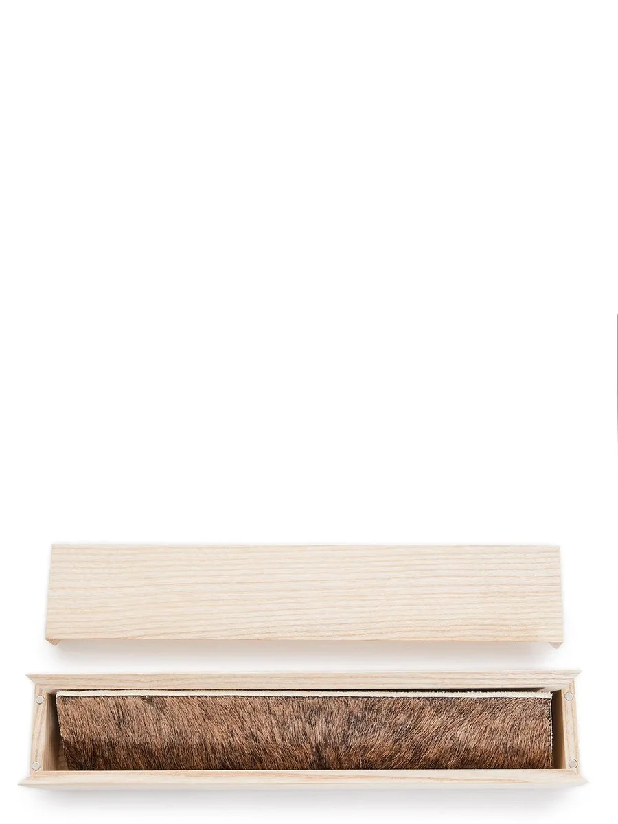 THIS TEA SPOON FEATURES A ROUND SHAPE STERLING SILVER UPPER PART AND AN OX BONE LOWER PART. IT ALSO COME WITH A CAMEL FUR COVER AND A WOODEN BOX.