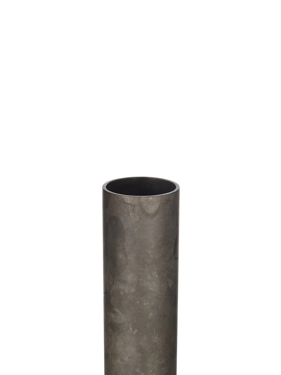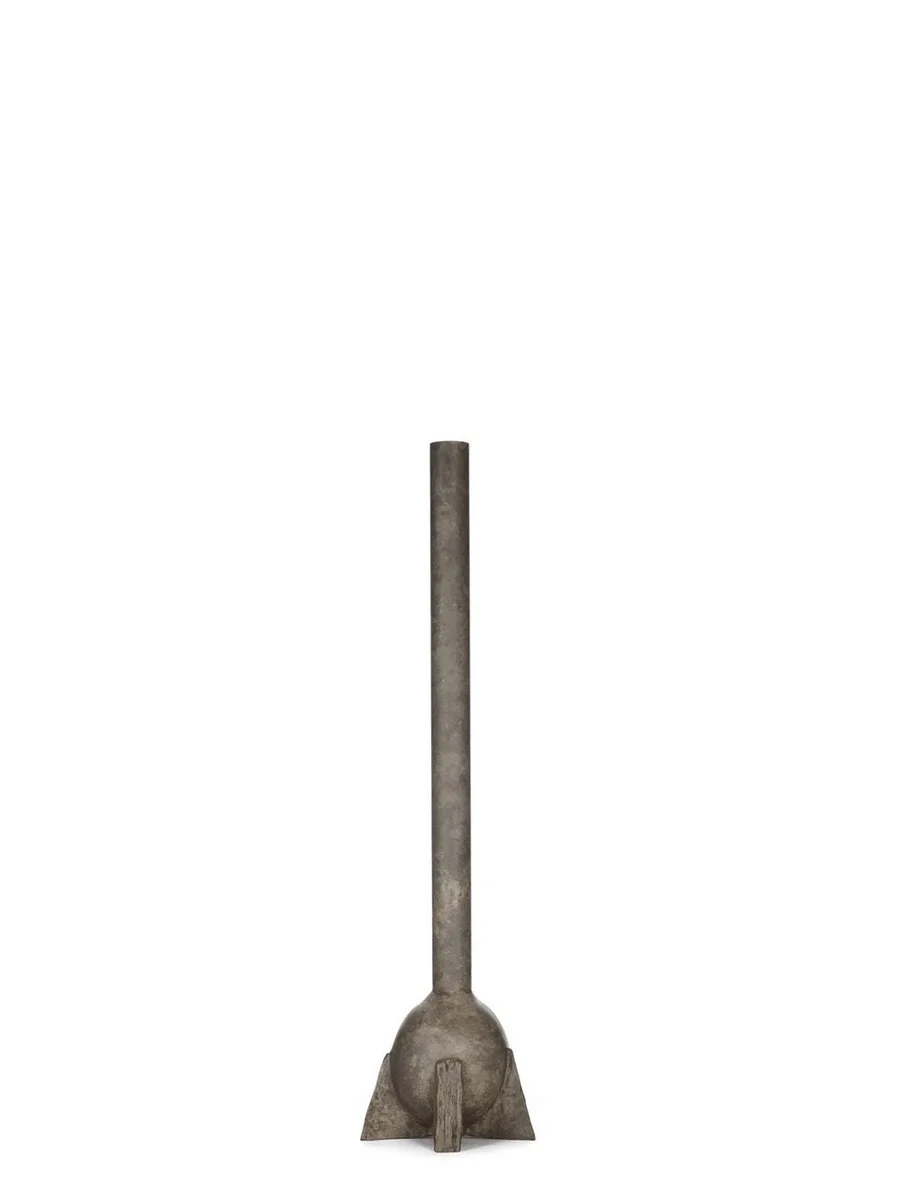 RICK OWENS SMALL SWAN NECK VASE IN NITRATE BRONZE HAS AN OVAL SHAPE, FEATURES A SLIM AND LONGNECK, FOUR LEGS AND A RELATIVELY POLISHED SURFACE.