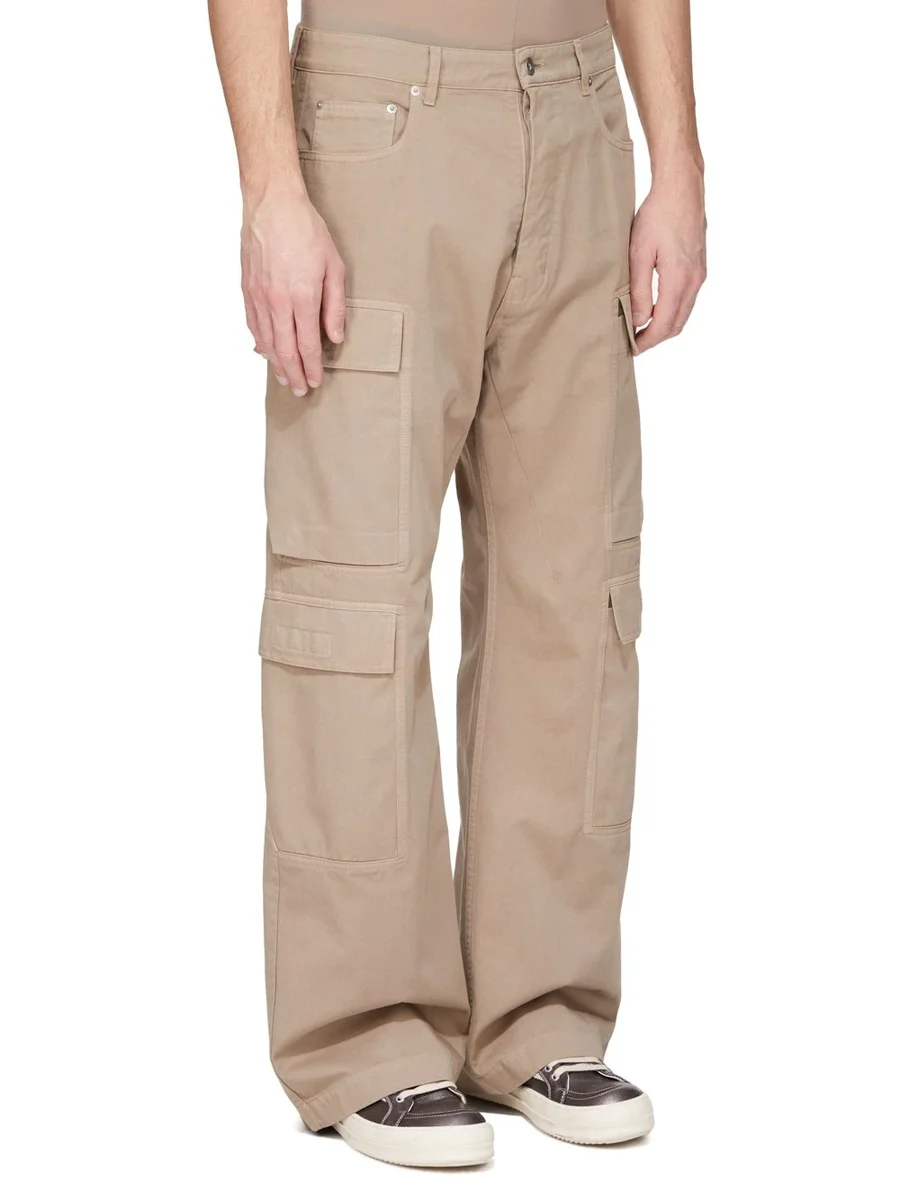 THESE DOUBLE CARGO JEANS ARE A FULL LENGTH 5-POCKET JEAN WITH A LOW-RISE AND A LOOSE FIT. THEY HAVE A CONCEALED SILVER ZIPPER FLY WITH TOP BUTTON, BELT LOOPS AND POCKET RIVETS AND THEY FEATURE TWO BEVELED CARGO POCKETS ON THE THIGH, WITH TWO SQUARE CARGO POCKETS BELOW AND TWO SQUARE BACK POCKETS. THEY ALL HAVE FLAPS AND TOPSTITCHING.