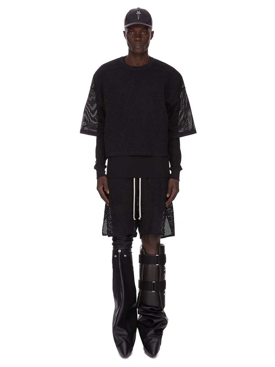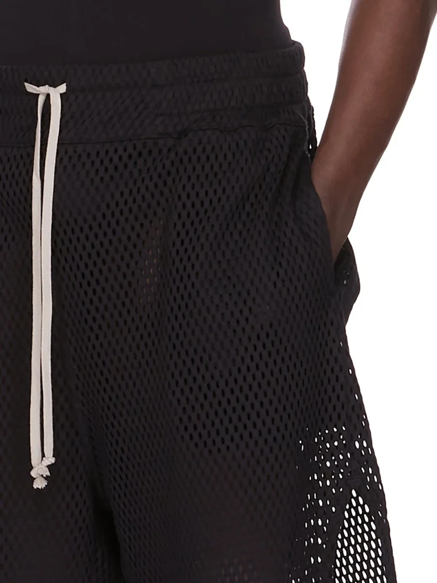 CHAMPION X RICK OWENS SS25 SHORTS IN BLACK OPEN MESH JERSEY