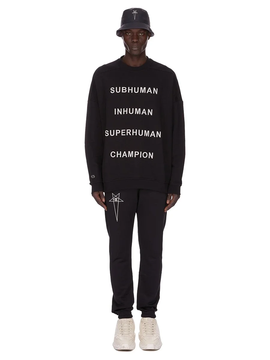 CHAMPION X RICK OWENS SS25 JOGGERS IN BLACK TECHNICAL SWEAT JERSEY