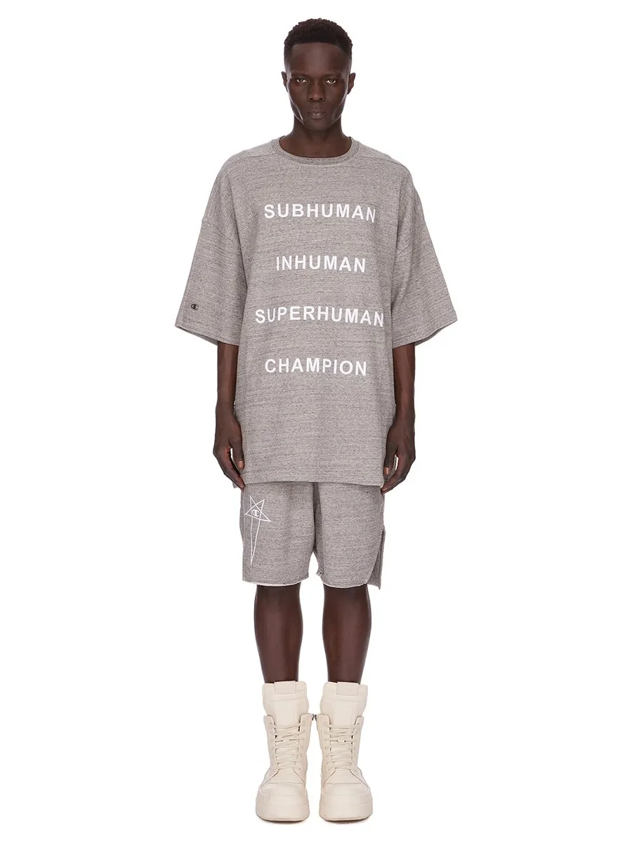 CHAMPION X RICK OWENS SS25 BEVELED PODS IN GREY MELANGE MELANGE FELPA JERSEY