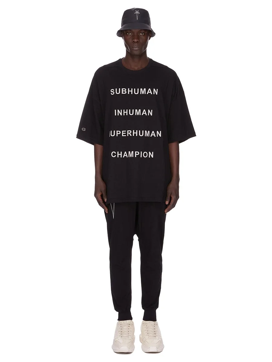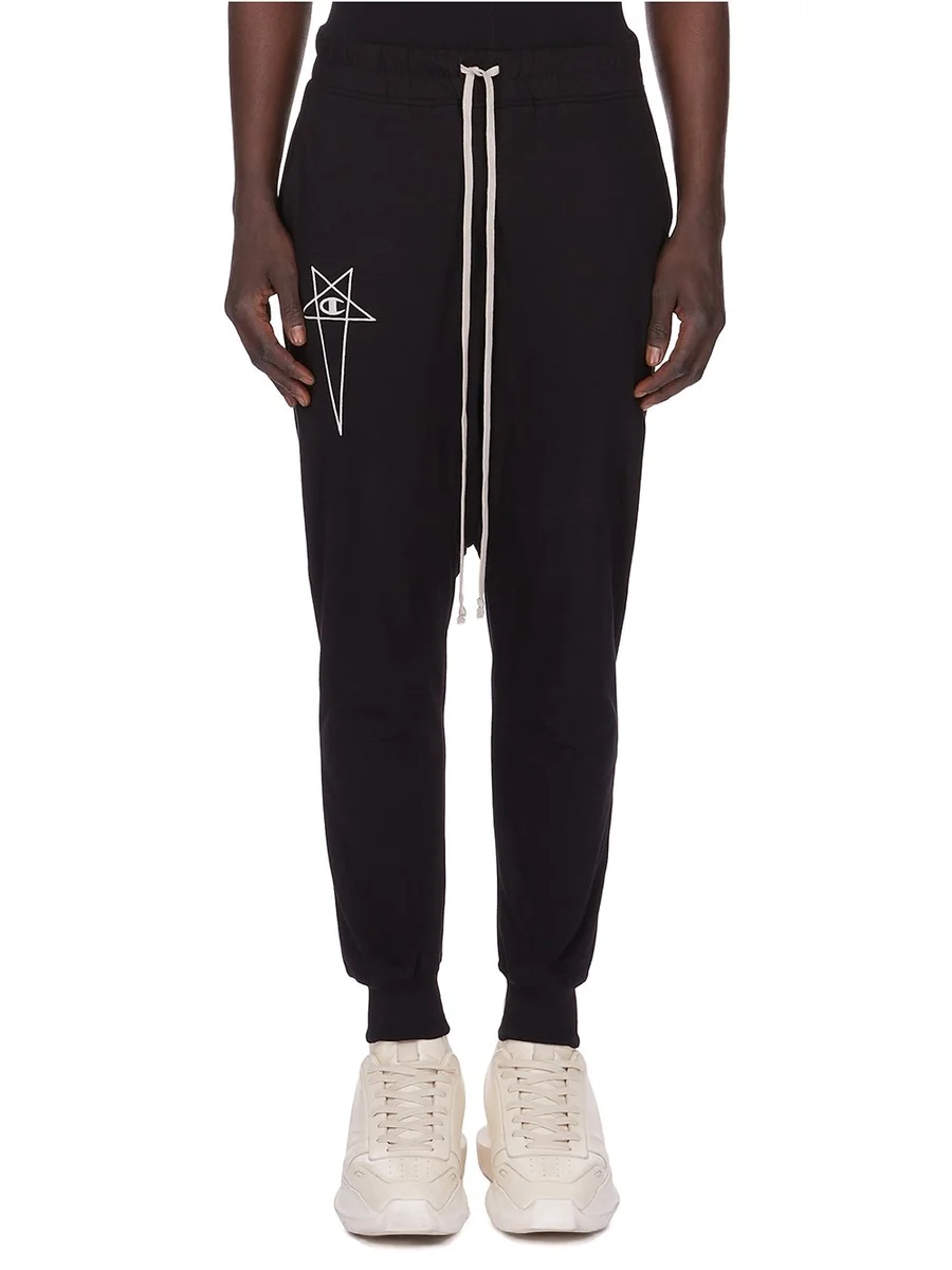 CHAMPION X RICK OWENS SS25 PRISONER DRAWSTRING IN BLACK COTTON JERSEY