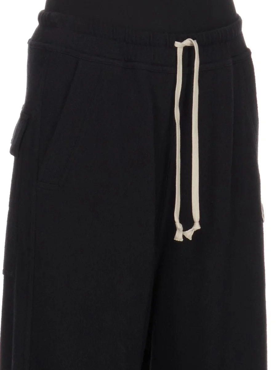 THESE WIDE BELA PANTS ARE FULL-LENGTH WITH A LOW CROTCH AND A WIDE LEG. THEY FEATURE AN ELASTICIZED WAISTBAND WITH DRAWSTRING AND A BELA EXPOSED CENTRE ZIPPER WITH TWO SNAP DETAIL AT BOTTOM. THEY HAVE SIDE POCKETS WITH EYELET AND RIVET DETAIL AND BACK POCKETS WITH FLAPS. IT HAS THE MONCLER +RICK OWENS EMBROIDERED LOGO PATCH ON THE LEFT THIGH.