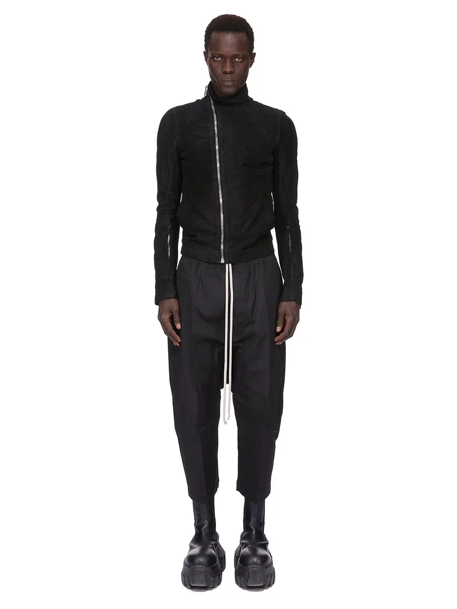RICK OWENS FOREVER DRAWSTRING CROPPED IN BLACK HEAVY COTTON POPLIN