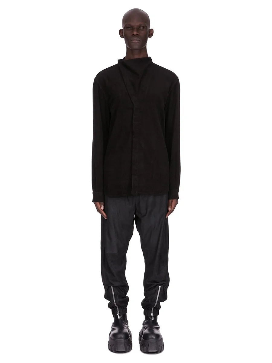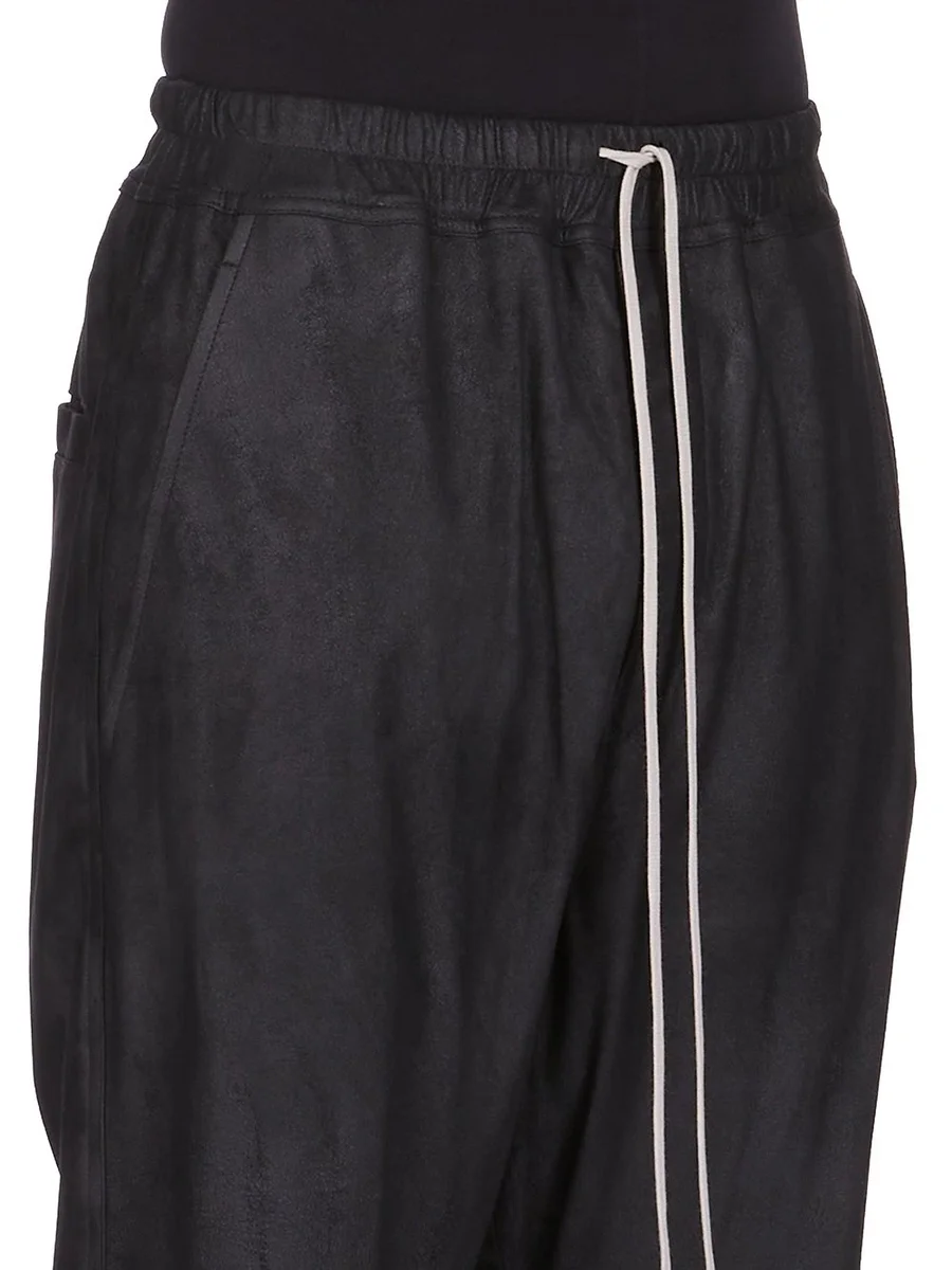 RICK OWENS FW25 CONCORDIANS TECUATL TRACK PANT IN BLACK BLISTER LAMB LEATHER