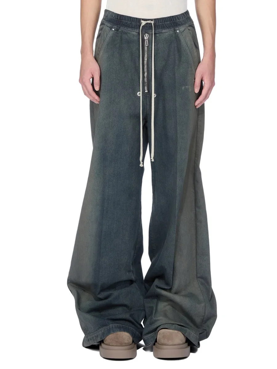 RICK OWENS FW25 CONCORDIANS WIDE BELA PANTS IN 14OZ DARKDUST DEGRADE SLUB DENIM