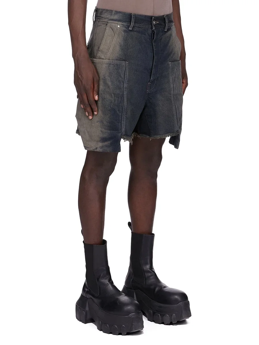 RICK OWENS FW25 CONCORDIANS STEFAN CARGO SHORTS IN 14OZ DARKDUST DEGRADE SLUB DENIM