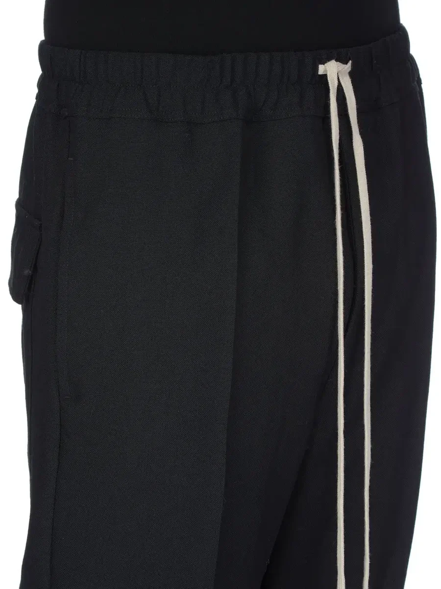 RICK OWENS FW25 CONCORDIANS DRAWSTRING SLIM LONG IN BLACK GRAIN DE POUDRE