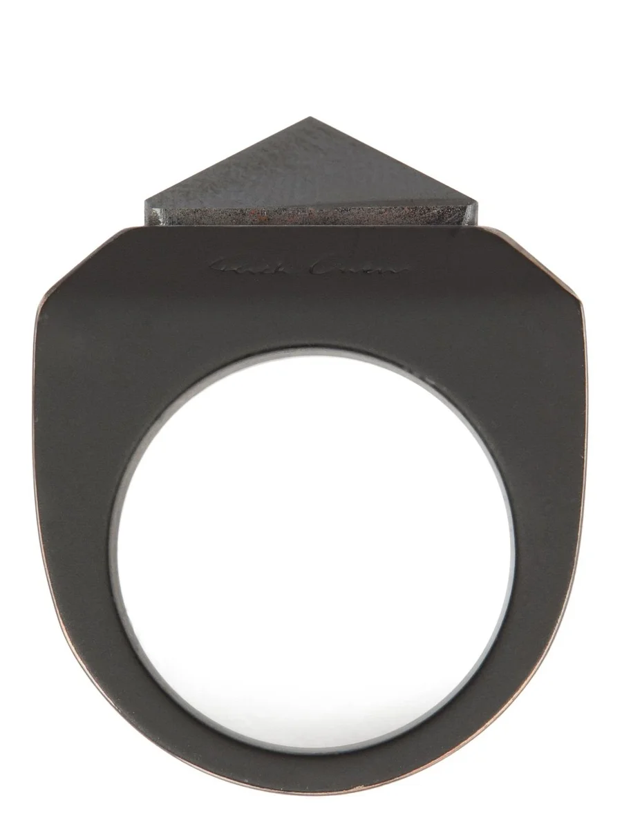 RICK OWENS CRYSTAL PYRAMID RING IN BRASSED BLACK