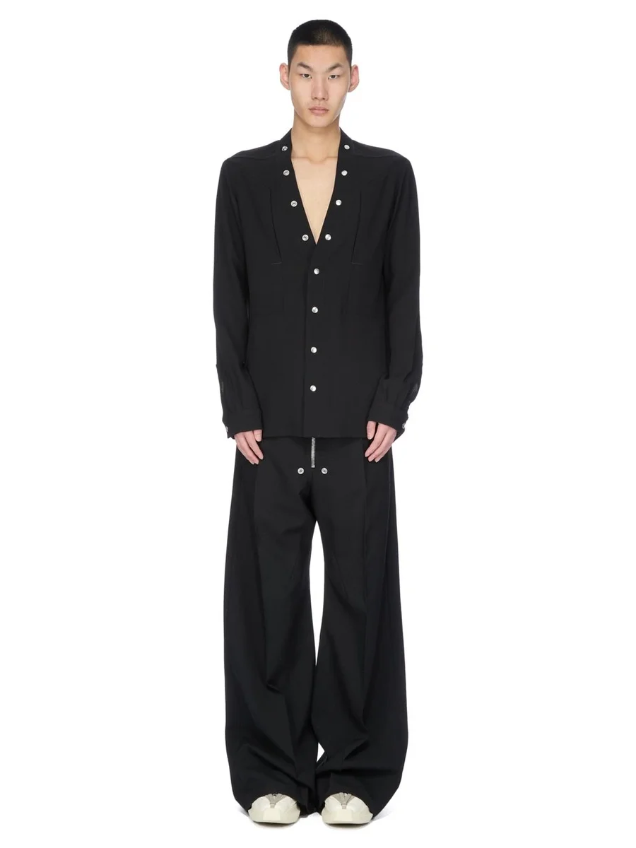 RICK OWENS FW25 CONCORDIANSLARRY FOGPOCKET SHIRT IN BLACK WOOL SABLE