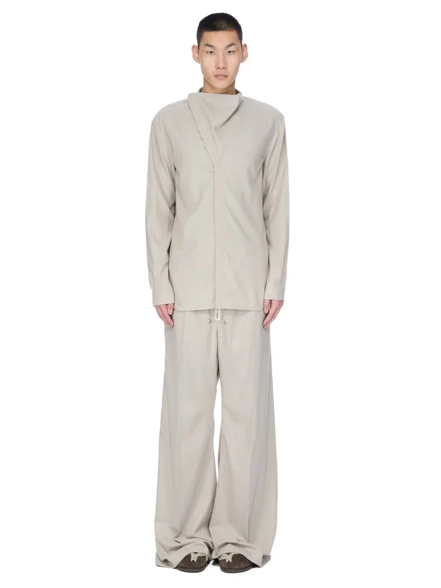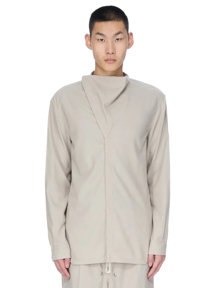 RICK OWENS FW25 CONCORDIANS ISLAND SHIRT IN PEARL WOOL FLANNEL