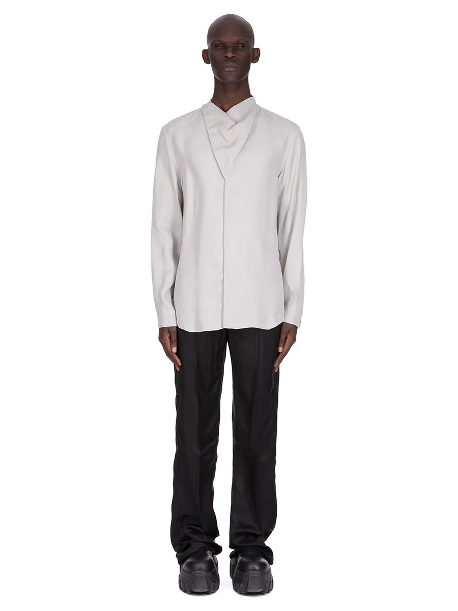 RICK OWENS FW25 CONCORDIANS ISLAND SHIRT IN PEARL WASHED CUPRO