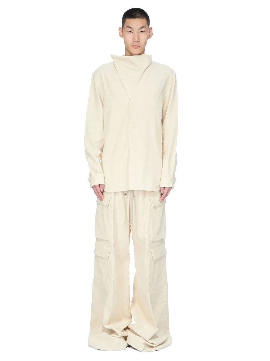 RICK OWENS FW25 CONCORDIANS ISLAND SHIRT IN NATURAL LINEN CORDUROY