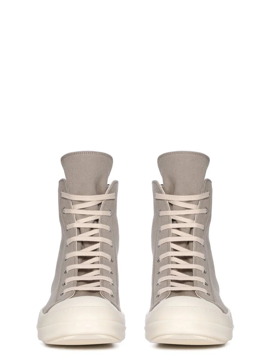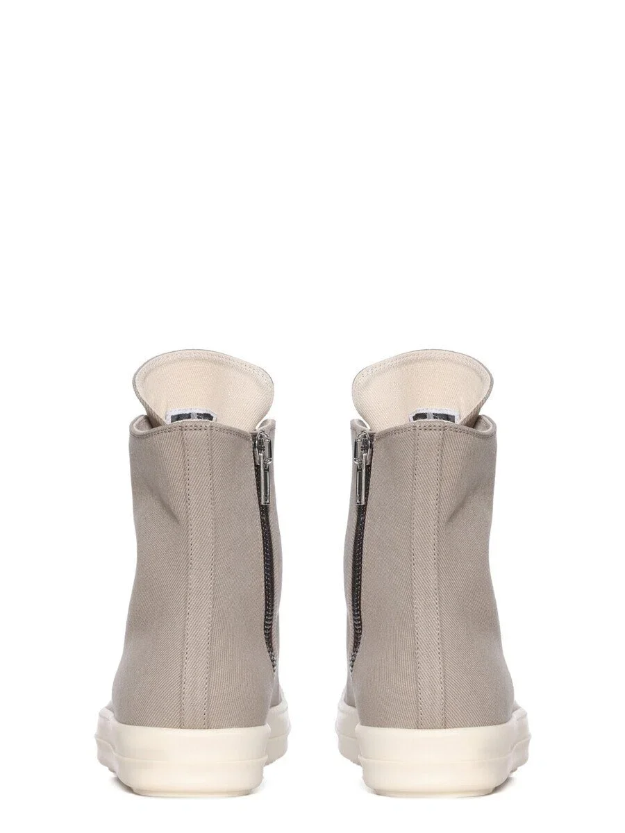THESE SNEAKS ARE ABOVE ANKLE HEIGHT AND FEATURE EIGHT EYELETS, LACES, A ZIPPER ON THE INSIDE ANKLE FOR EASY FASTENING, TOE CAPS AND SHARK TOOTH SOLES.