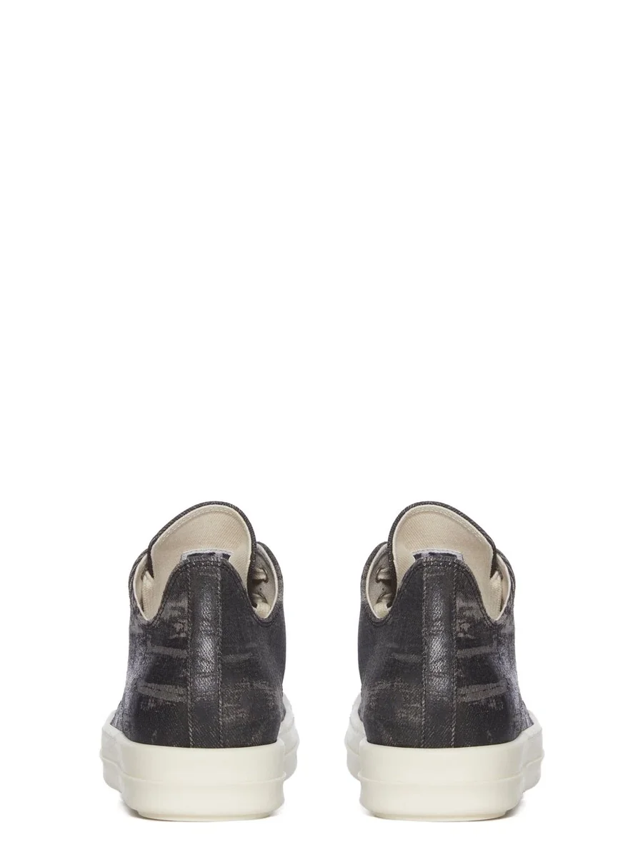 DRKSHDW FW25 CONCORDIANS LOW SNEAKS IN BLACK WASHED FOIL/MILK/MILK 13OZ WASHED FOIL DENIM