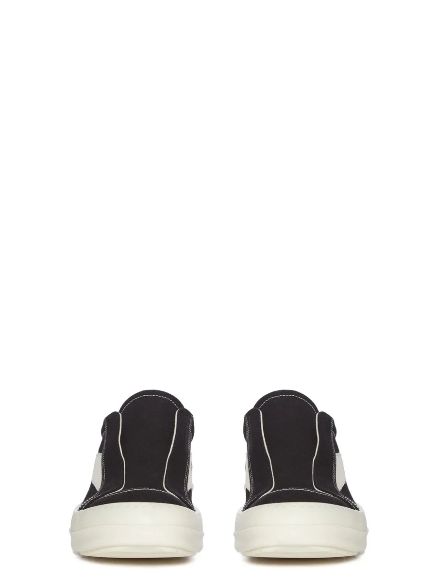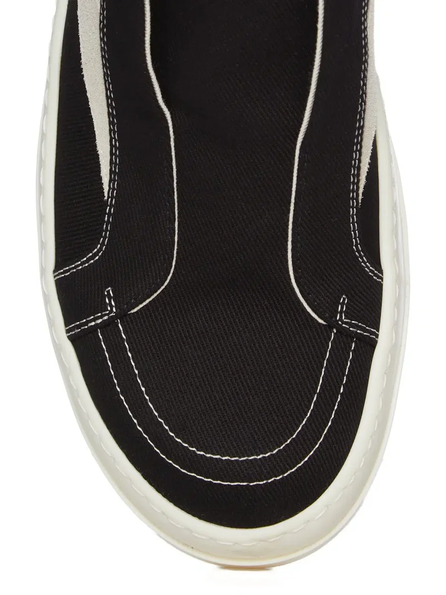 DRKSHDW FW25 CONCORDIANS LACELESS VINTAGE SNEAKS IN BLACK/MILK/MILK 13OZ OVERDYED DENIM AND SUEDE LEATHER