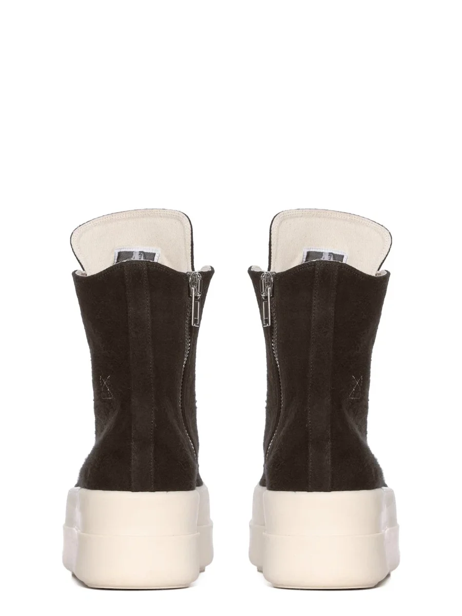 THESE DOUBLE BUMPER SNEAKS ARE ABOVE ANKLE HEIGHT AND FEATURE EIGHT EYELETS, LACES, A ZIPPER ON THE INSIDE ANKLE FOR EASY FASTENING, TOE CAPS AND DOUBLE HEIGHT BUMPER SHARK TOOTH SOLES.