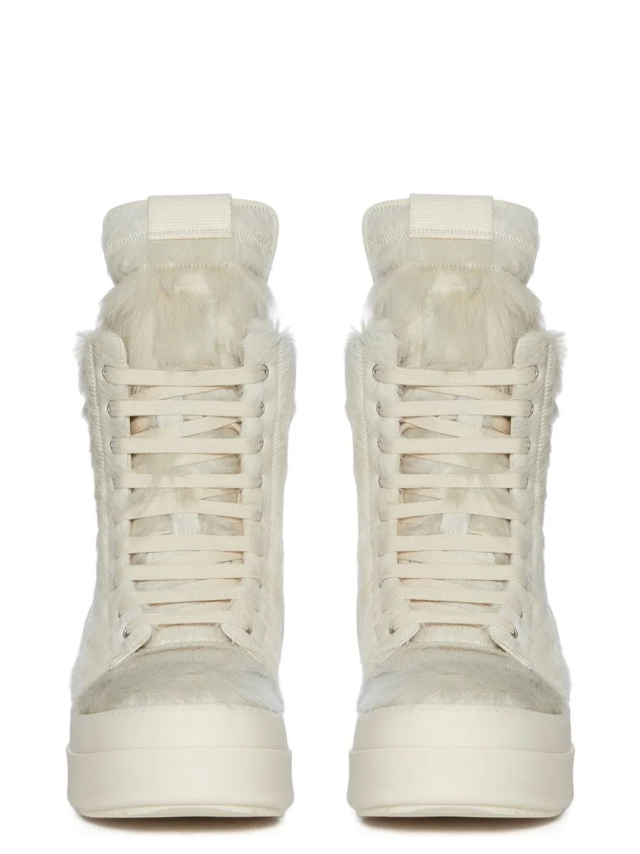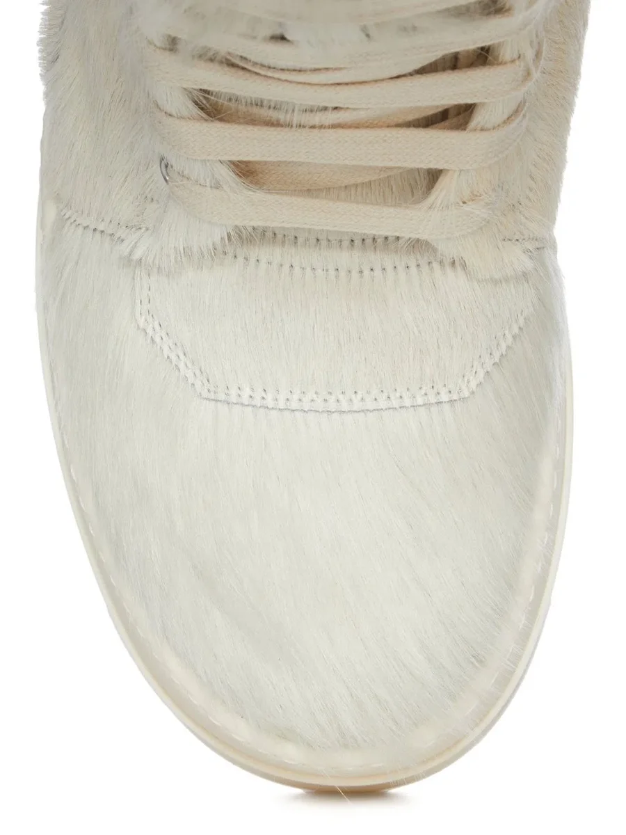RICK OWENS FW25 CONCORDIANS RUNWAY MEGAGEOBASKETS IN MILK/MILK/MILK UNSHAVED COW LEATHER