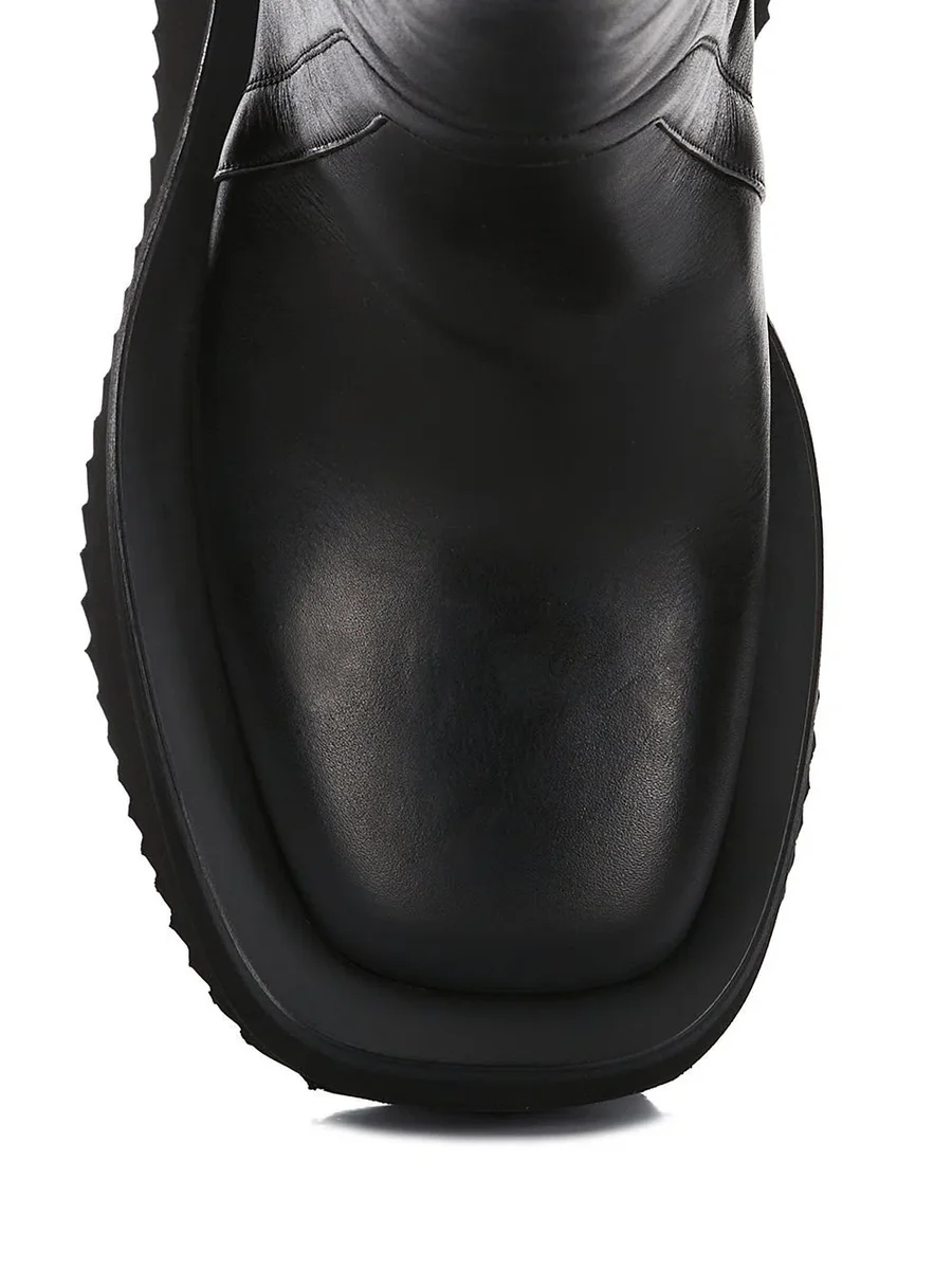 RICK OWENS FW25 CONCORDIANS RUNWAY FACTORY BOOTS IN BLACK WASHED CALF LEATHER