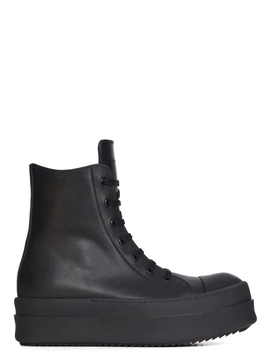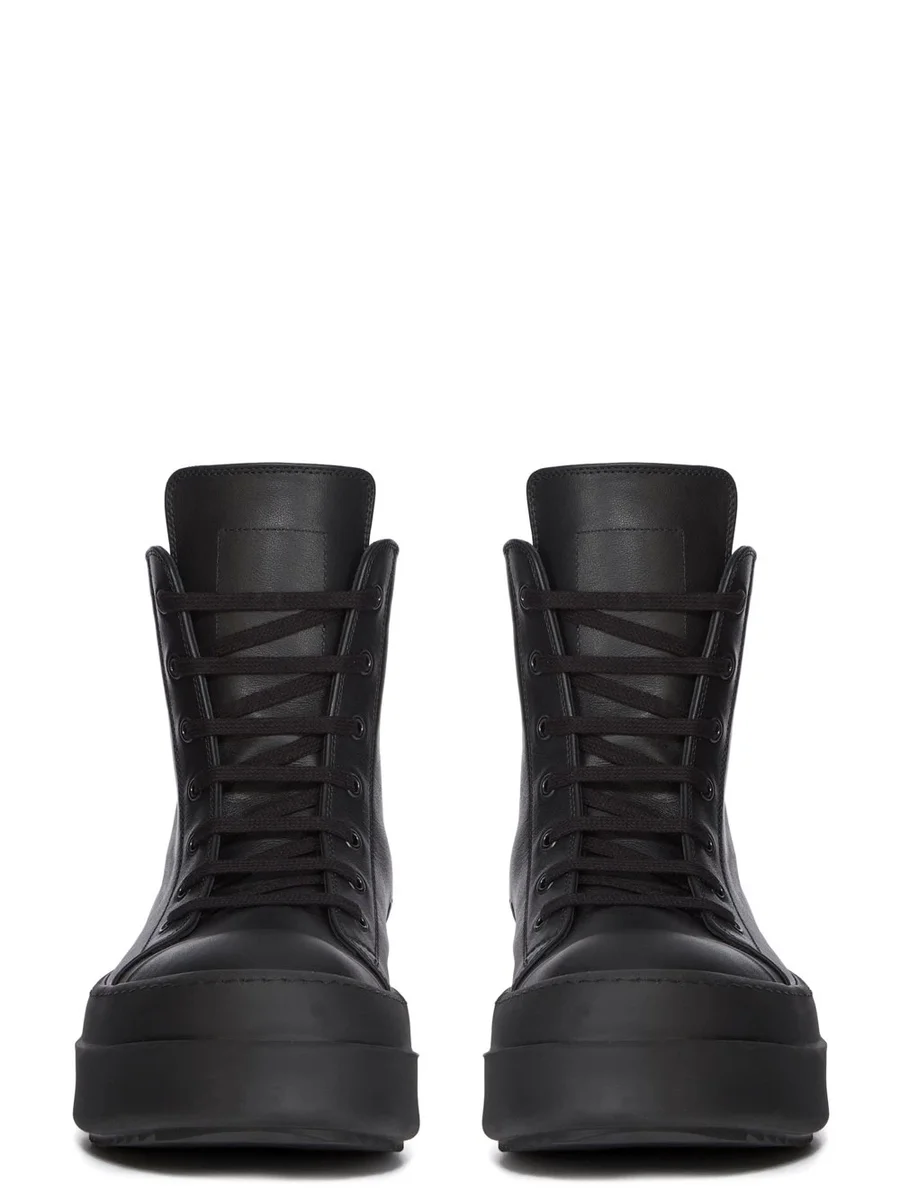 RICK OWENS FW25 CONCORDIANS MEGA BUMPER SNEAKS IN ALL BLACK FULL GRAIN COW LEATHER