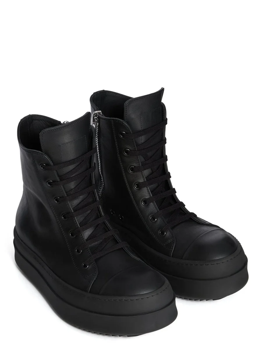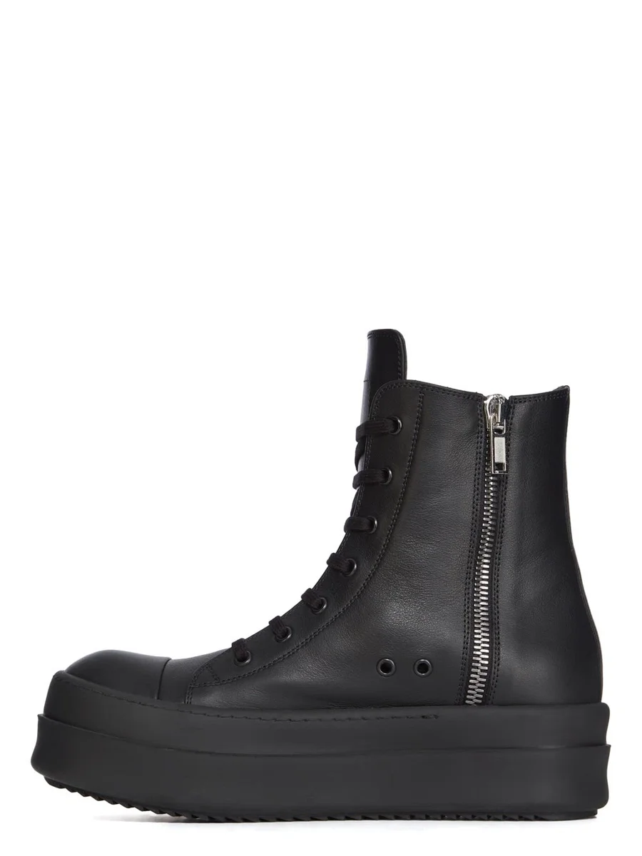 THESE MEGA BUMPER SNEAKS ARE ABOVE-ANKLE HEIGHT AND FEATURE SEVEN EYELETS, LACES, A ZIPPER ON THE INSIDE ANKLE FOR EASY FASTENING, TOE CAPS AND DOUBLE HEIGHT, SHARK-TOOTHED MEGA BUMPER SOLES.