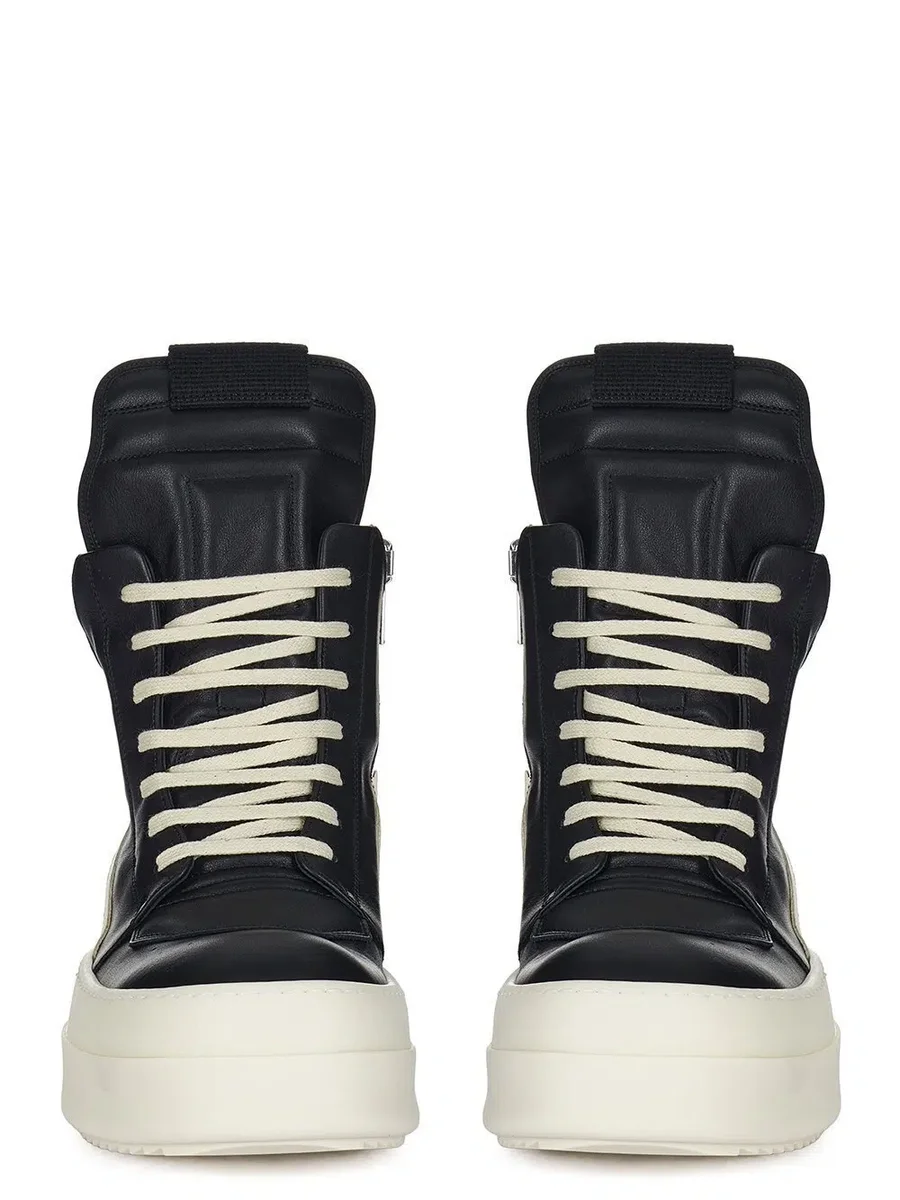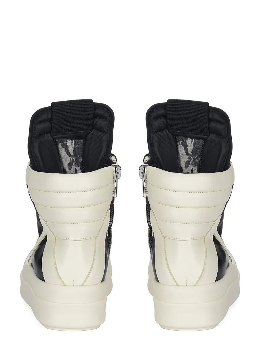 RICK OWENS FW25 CONCORDIANS MEGA BUMPER GEOBASKET IN BLACK/MILK/MILK FULL GRAIN COW LEATHER