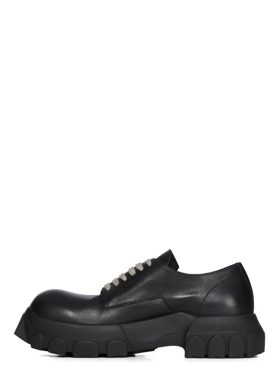 RICK OWENS FW25 CONCORDIANS LACEUP BOZO TRACTOR IN BLACK/BLACK WASHED CALF LEATHER