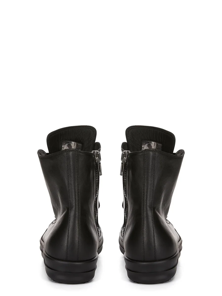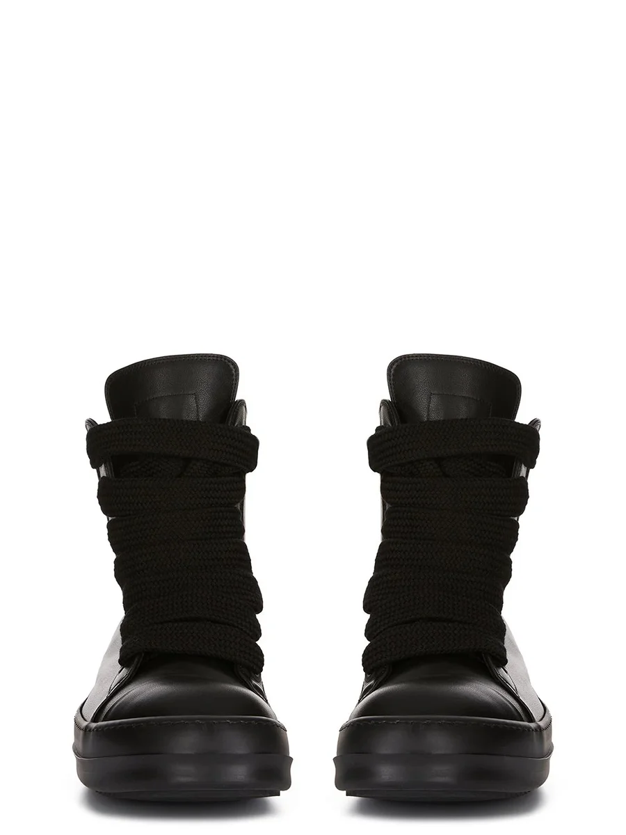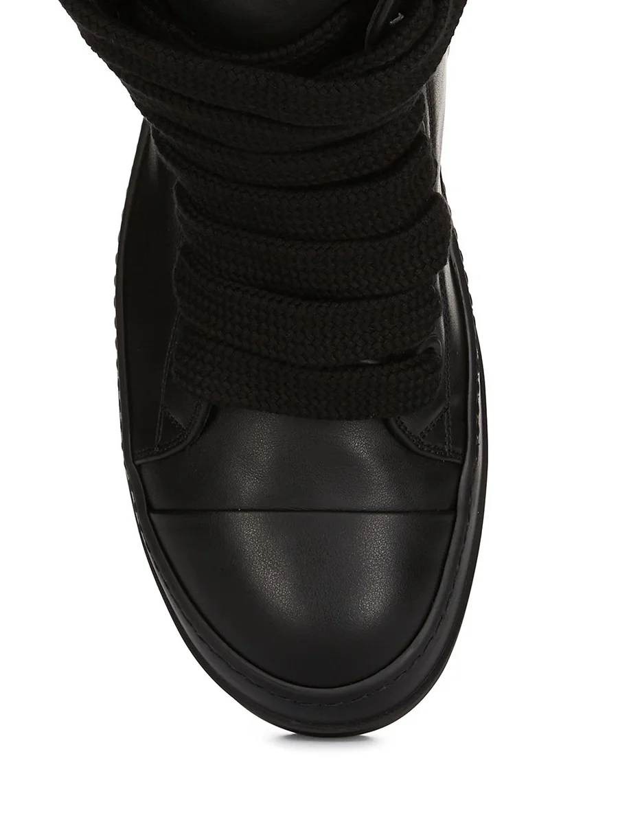 RICK OWENS FW25 CONCORDIANS JUMBOLACE SNEAKERS IN ALL BLACK FULL GRAIN COW LEATHER