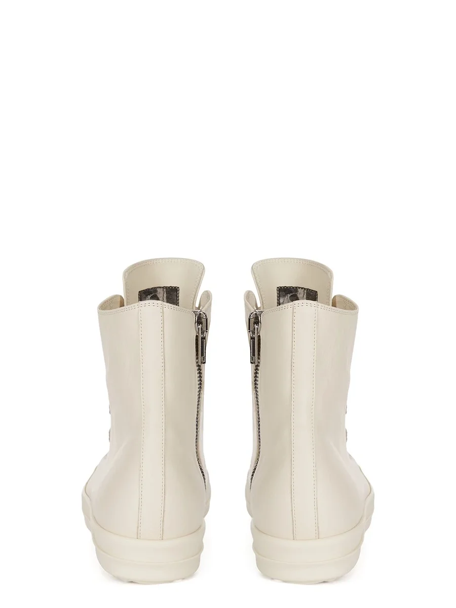 RICK OWENS FW25 CONCORDIANS JUMBOLACE SNEAKERS IN MILK/MILK/MILK FULL GRAIN COW LEATHER