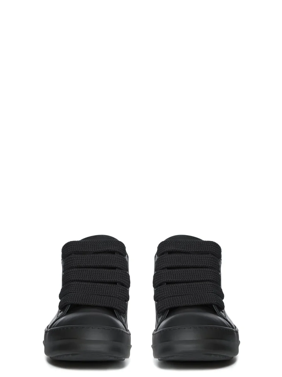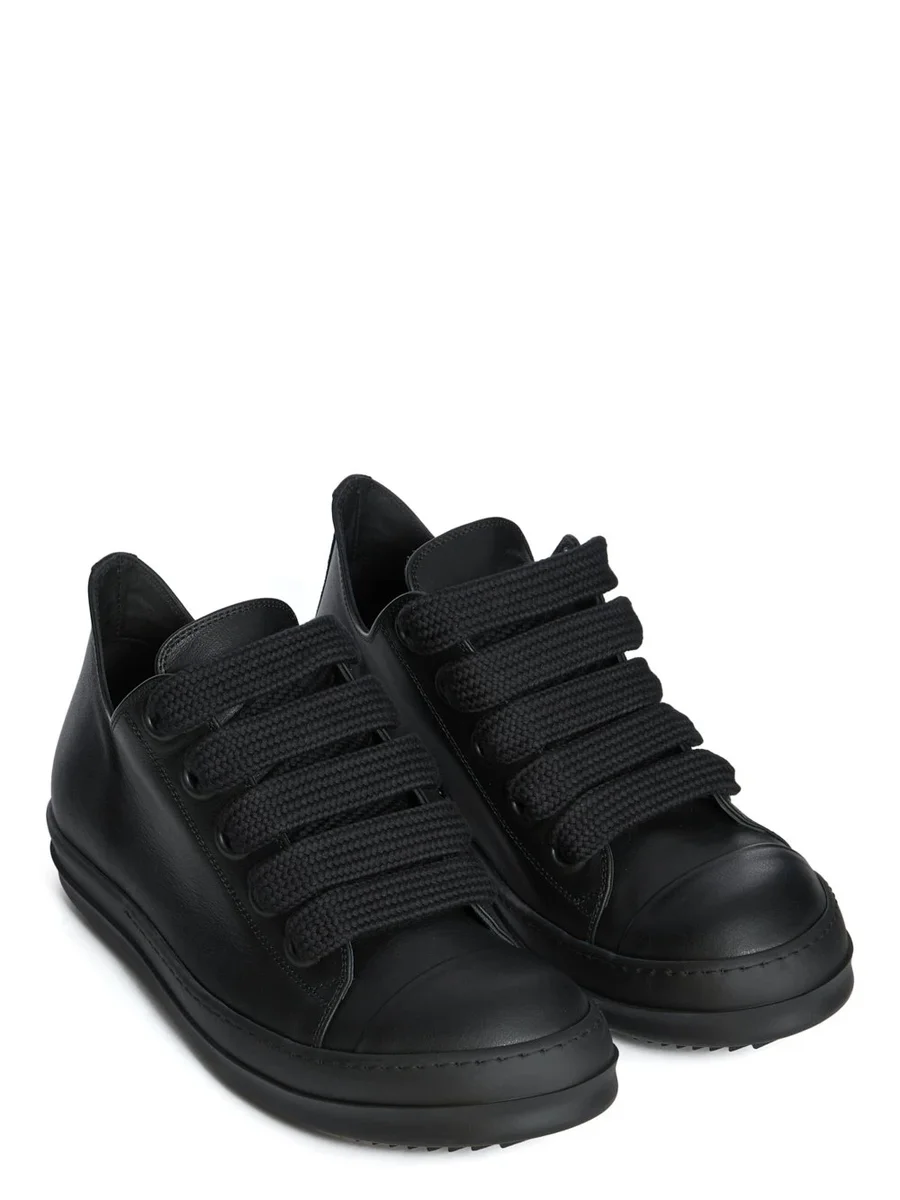 RICK OWENS FW25 CONCORDIANSJUMBOLACE LOW SNEAKS IN ALL BLACK FULL GRAIN COW LEATHER