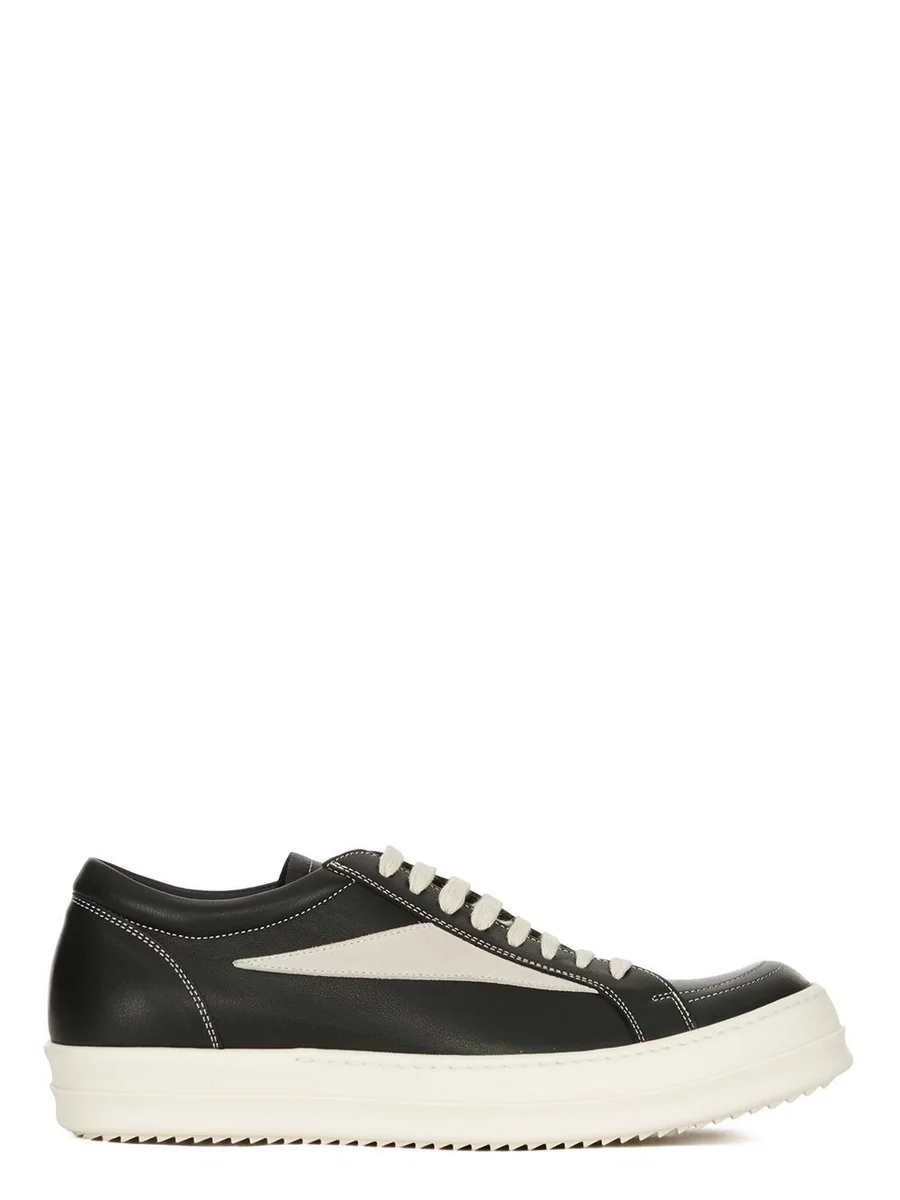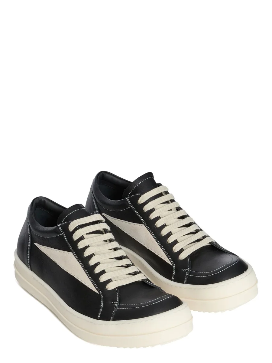 RICK OWENS FW25 CONCORDIANS VINTAGE SNEAKS IN BLACK/MILK/MILK FULL GRAIN COW LEATHER AND SUEDE LEATHER
