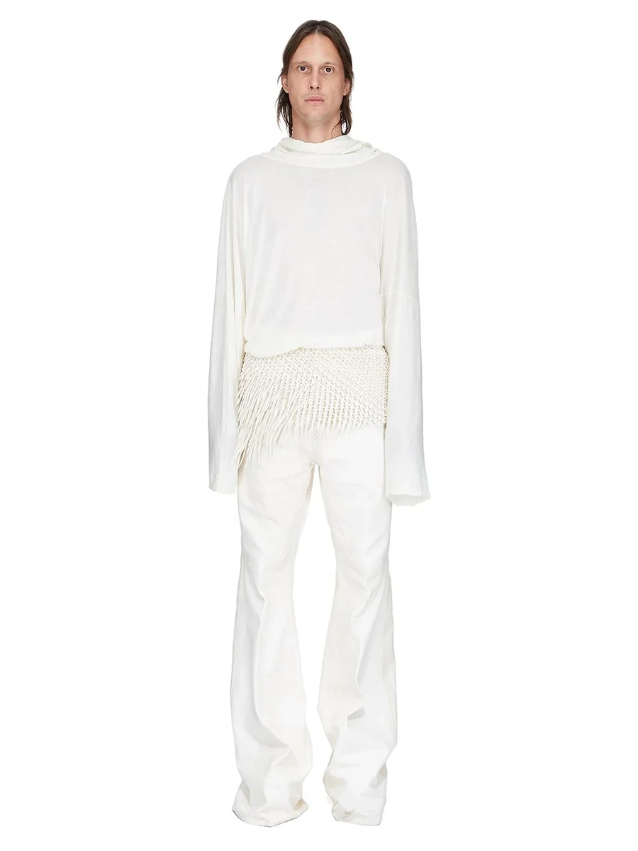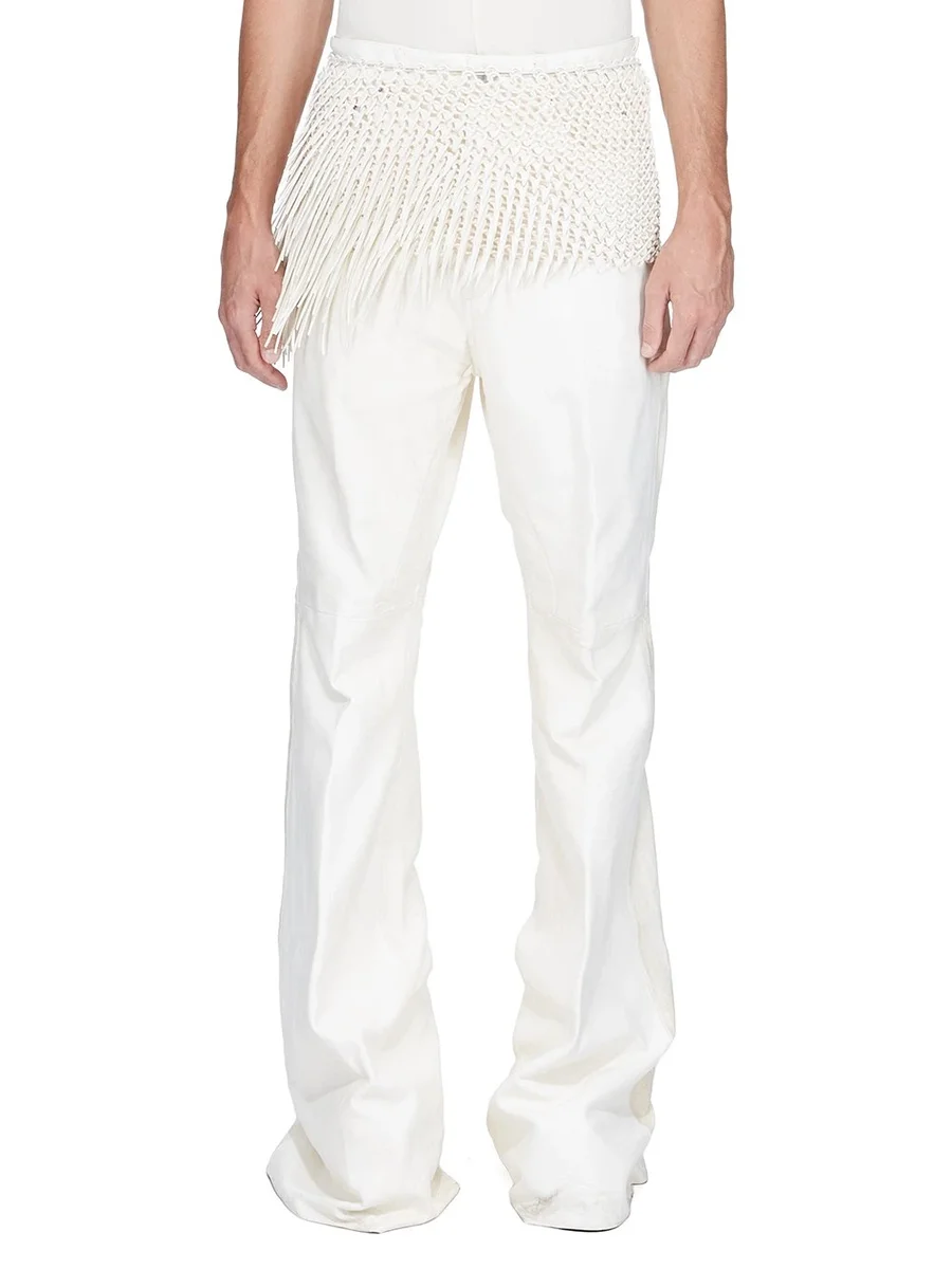 RICK OWENS FW25 CONCORDIANS RUNWAY CHAIN SKIRT IN DIRTY MILK GROPPONE COW LEATHER