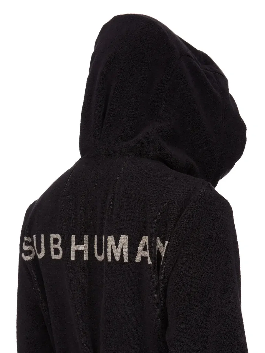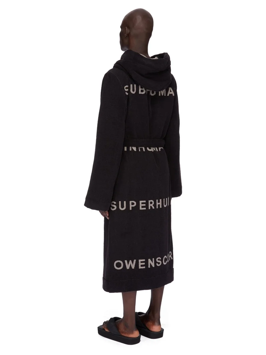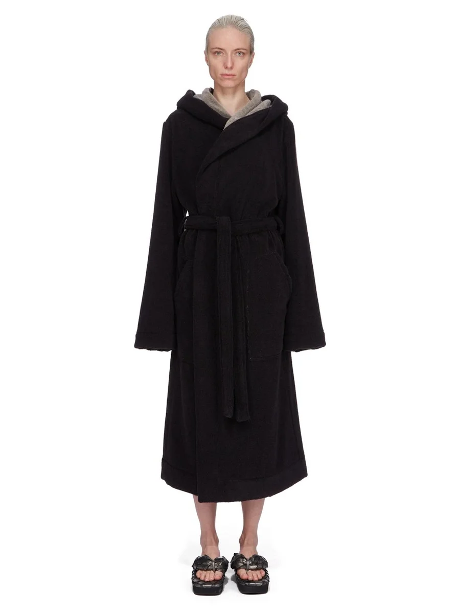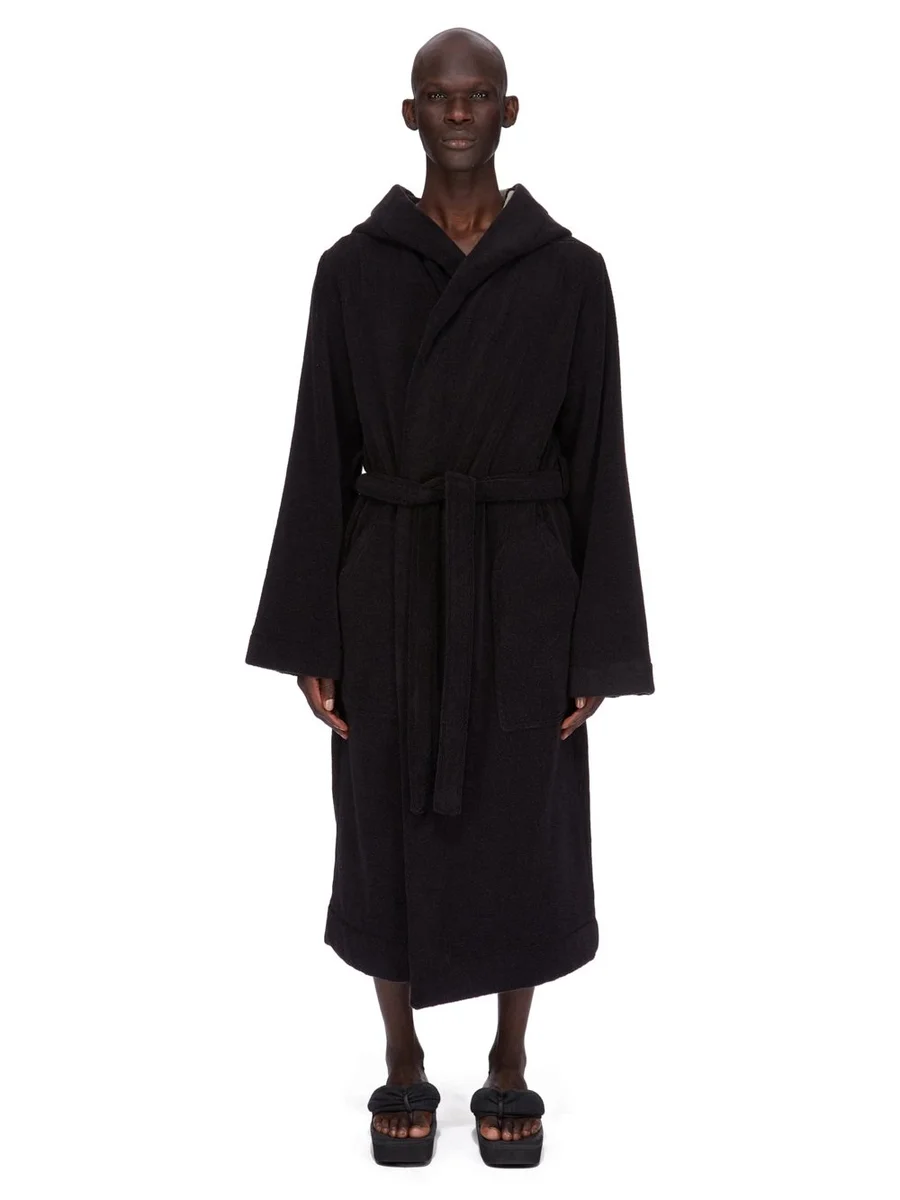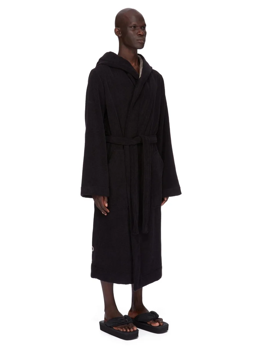 RICK OWENS BEACH ROBE IN BLACK/PEARLHEAVY COTTON TERRY