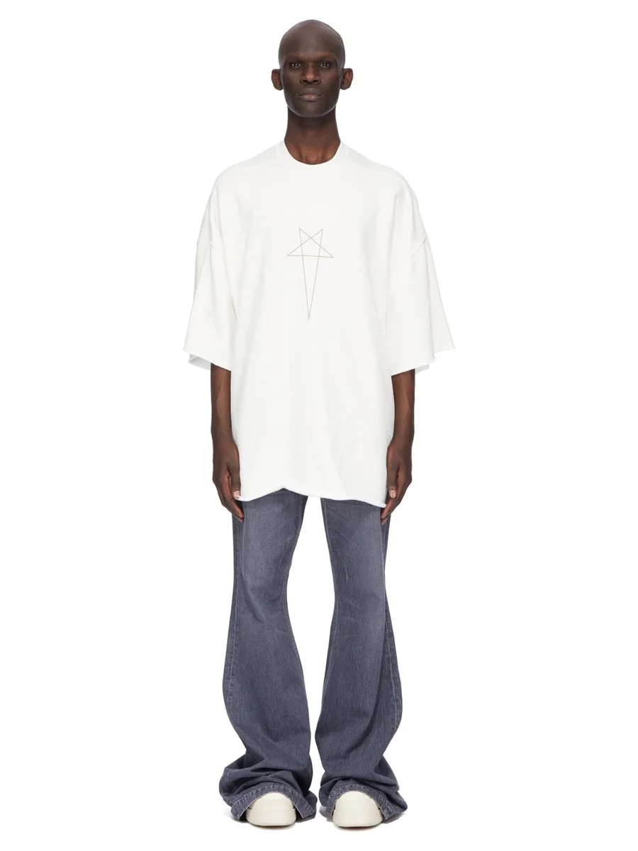 THIS TOMMY T IS BELOW HIP LENGTH WITH A JUMBO OVERSIZED FIT. IT HAS WIDE, SHORT SLEEVES WITH A DROPPED ARMHOLE AND A RIBBED CREWNECK. IT FEATURES SIGNATURE FRONT LEVEL SHOULDER SEAMS AND A CENTRE BACK SEAM.