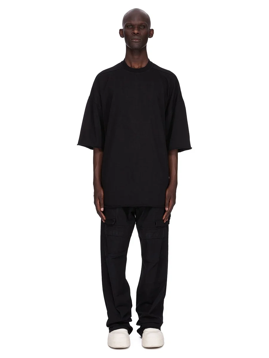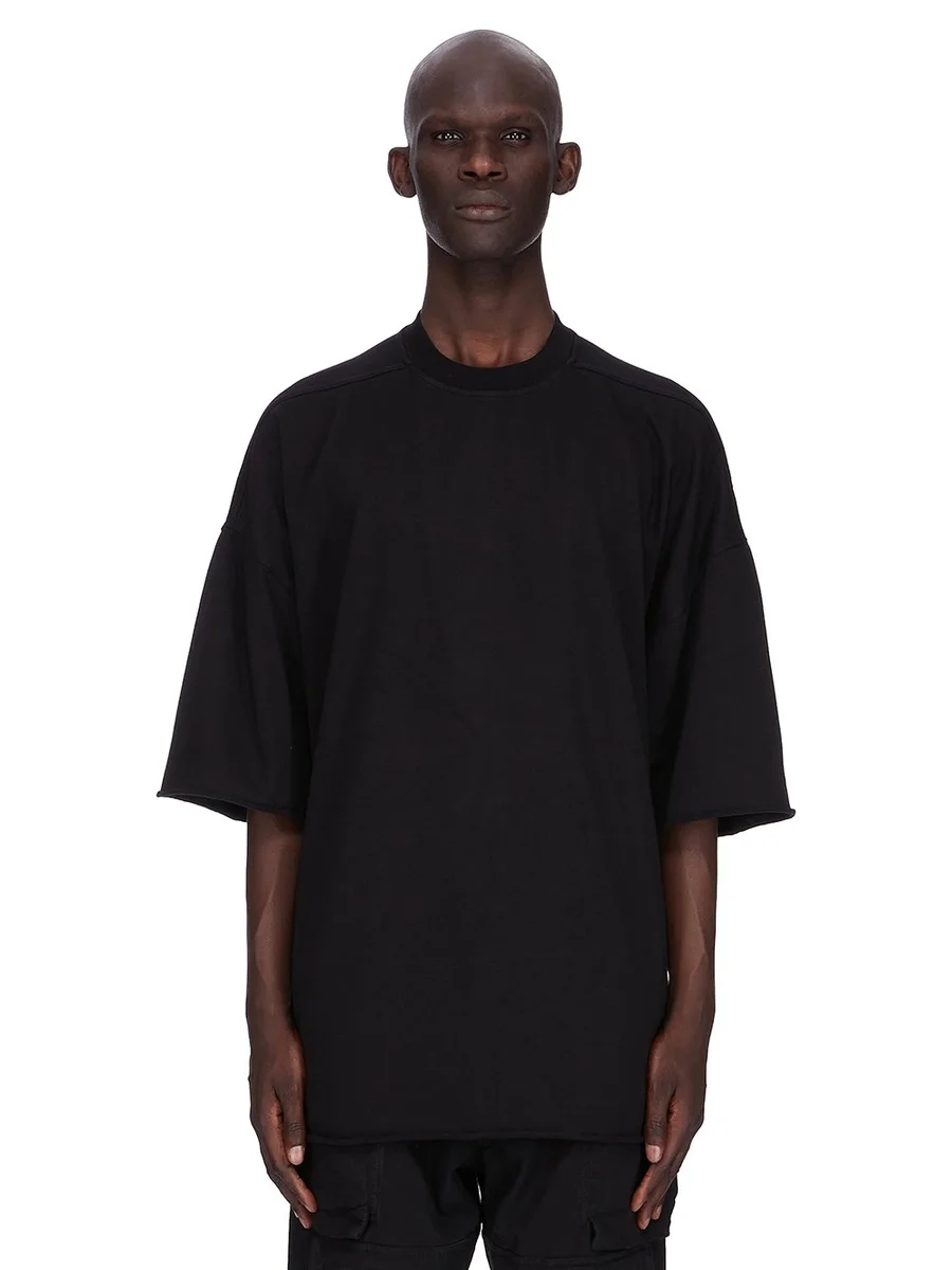 THIS TOMMY T IS BELOW HIP LENGTH WITH A JUMBO OVERSIZED FIT. IT HAS WIDE, SHORT SLEEVES WITH A DROPPED ARMHOLE AND A RIBBED CREWNECK. IT FEATURES SIGNATURE FRONT LEVEL SHOULDER SEAMS AND A CENTRE BACK SEAM.