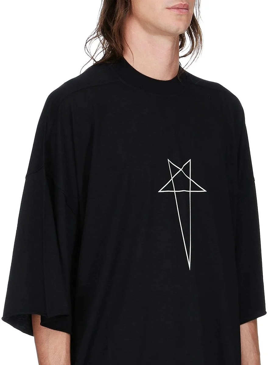 THIS TOMMY T IS BELOW HIP LENGTH WITH A JUMBO OVERSIZED FIT. IT HAS WIDE, SHORT SLEEVES WITH A DROPPED ARMHOLE AND A RIBBED CREWNECK. IT FEATURES SIGNATURE FRONT LEVEL SHOULDER SEAMS AND A CENTRE BACK SEAM.