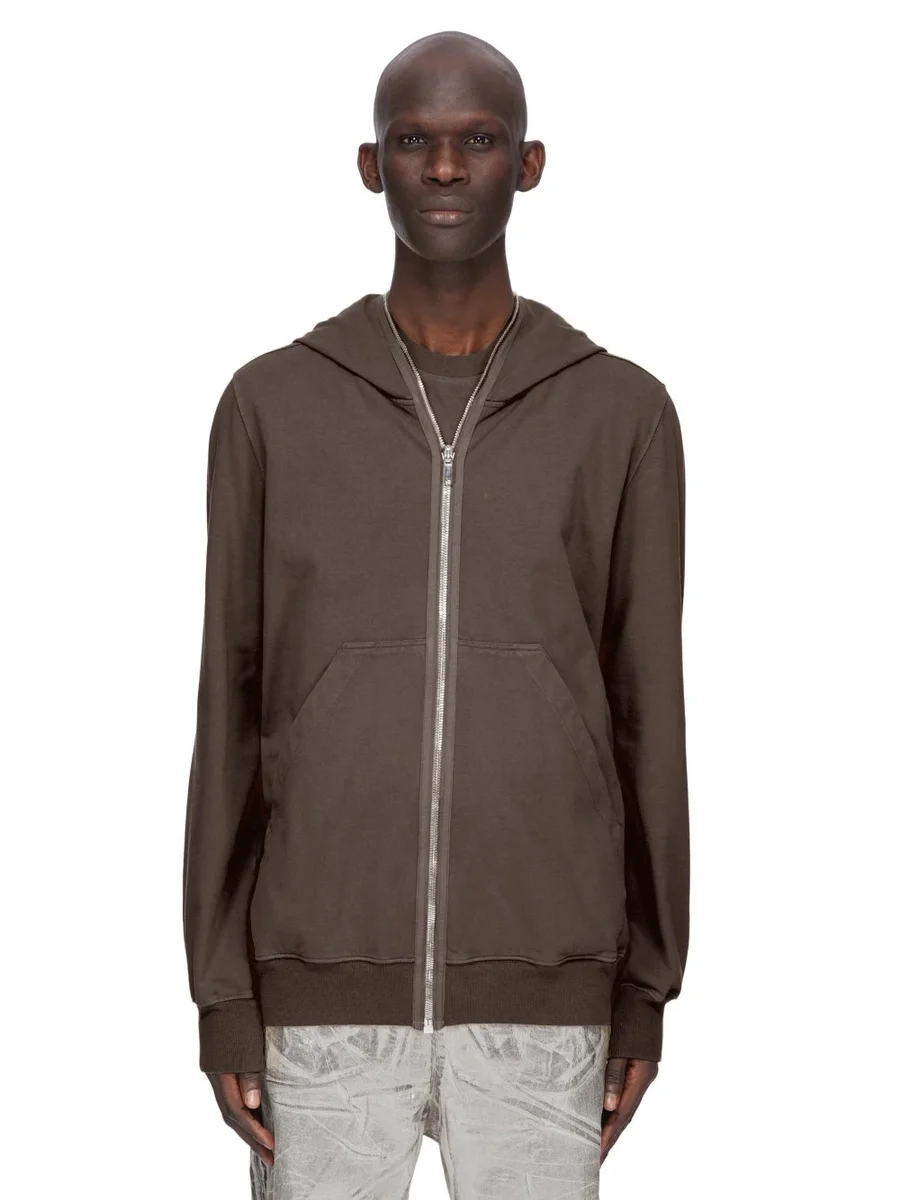 THIS JUMBO GIMP HOODIE IS SLIGHTLY BELOW HIP LENGTH WITH LONG SLEEVES AND LARGE FIT. IT HAS A FRONT ZIPPER CLOSURE WITH EXPOSED ZIPPER TAPE THAT RUNS FROM THE HEM ALL THE WAY UP THROUGH THE HOOD, ALLOWING IT TO BE ZIPPERED COMPLETELY CLOSED OVER THE FACE. IT HAS TWO SIDE FRONT POCKETS, RIBBED CUFFS AND HEM AND A SINGLE SEAM RUNNING DOWN THE CENTRE BACK SPINE.
