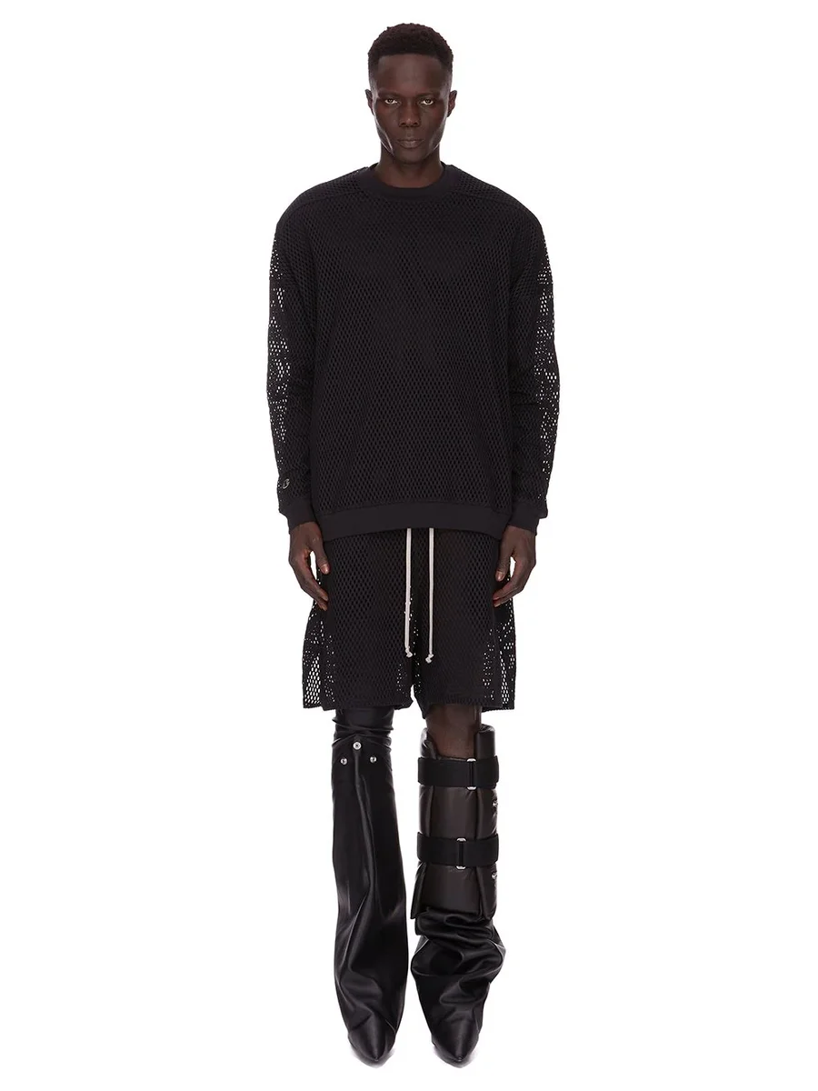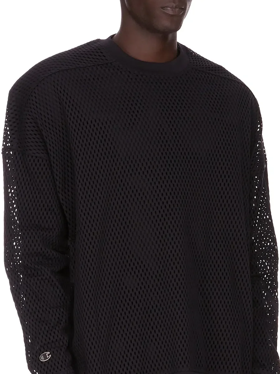 CHAMPION X RICK OWENS SS25 JUMBO SWEAT IN BLACK OPEN MESH JERSEY