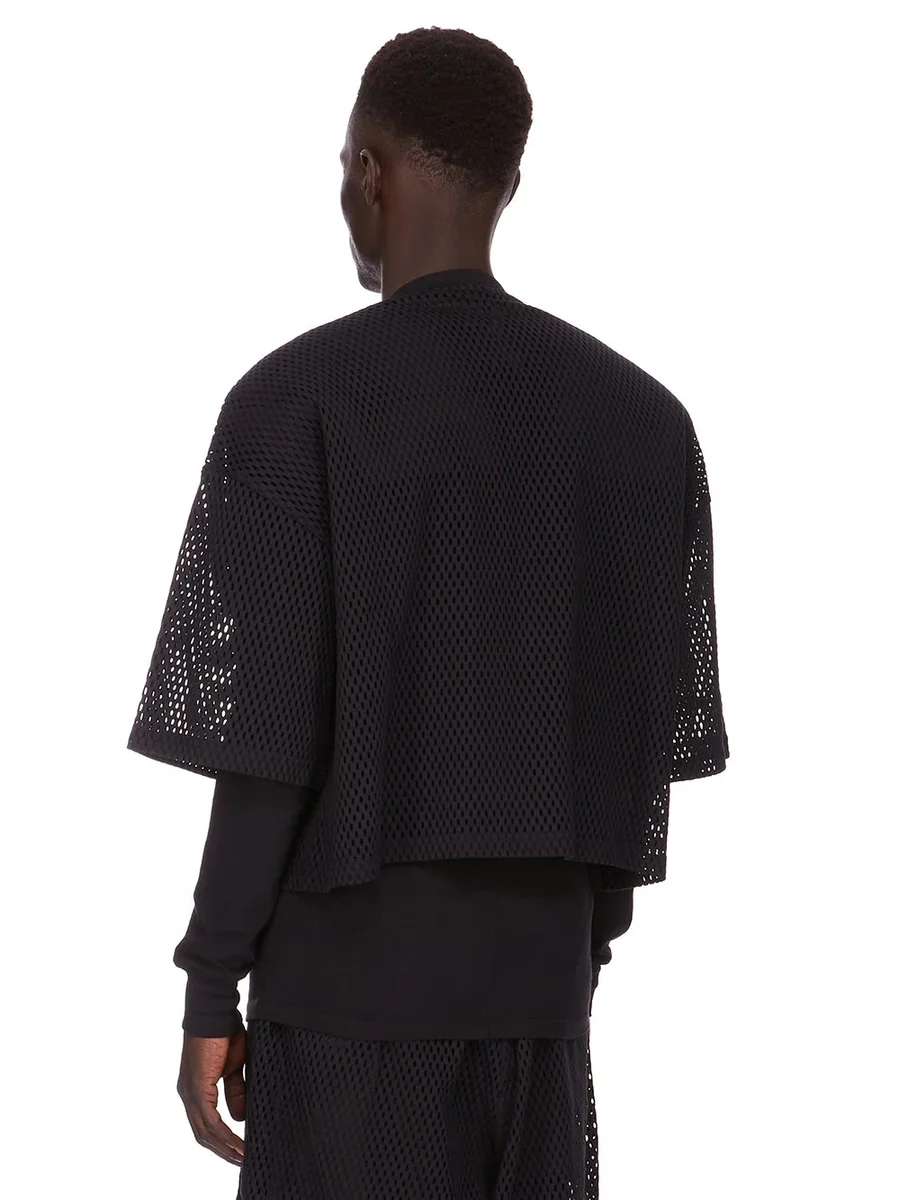 CHAMPION X RICK OWENS SS25 TOMMY T CROPPED IN BLACK OPEN MESH JERSEY