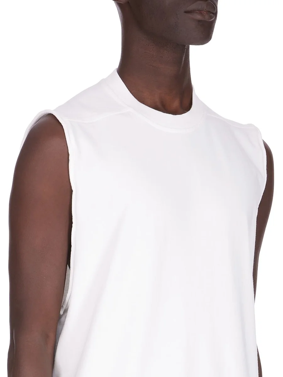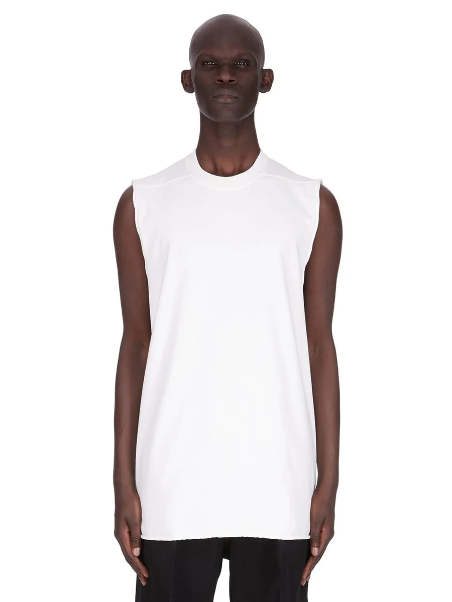 THIS JUMBO SL T IS BELOW HIP LENGTH WITH AN OVERSIZED FIT AND SLEEVELESS. IT HAS A RIBBED CREWNECK AND IT FEATURES SIGNATURE FRONT LEVEL SHOULDER SEAMS AND A CENTRE BACK SEAM.