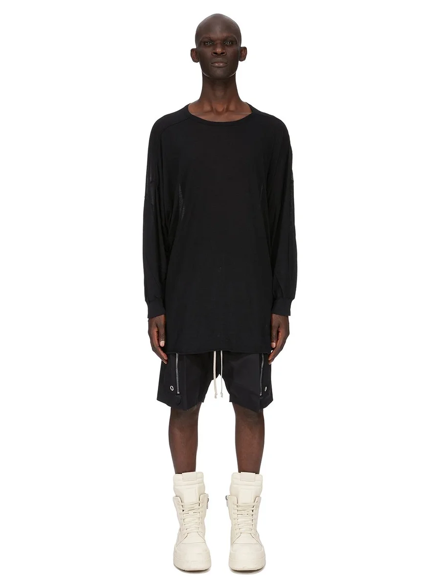 RICK OWENS FW25 CONCORDIANS TOMMY LS T IN BLACK UNSTABLE COTTON