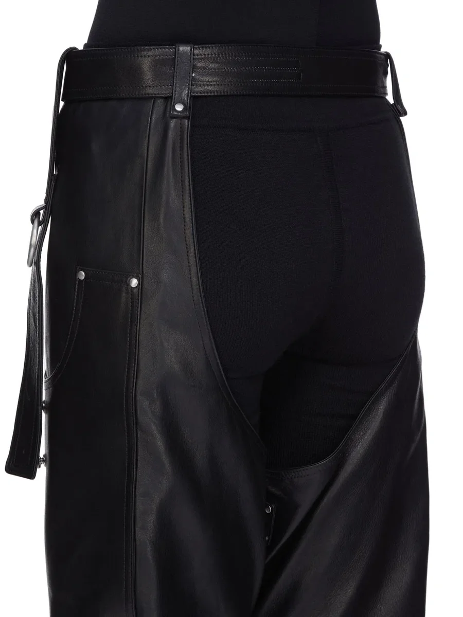 RICK OWENS FW25 CONCORDIANS RUNWAY RICK OWENS/LEO PROTHMANN CHAPS IN BLACK VEG NAPPA LAMB