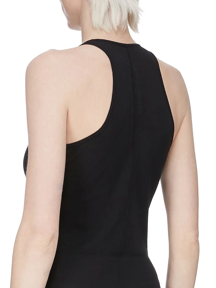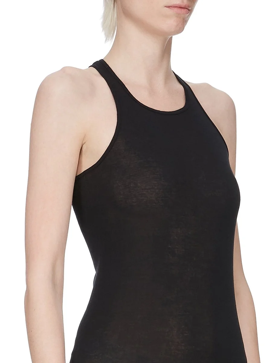 RICK OWENS FOREVER TANK DRESS IN BLACK MINI RIB JERSEY.