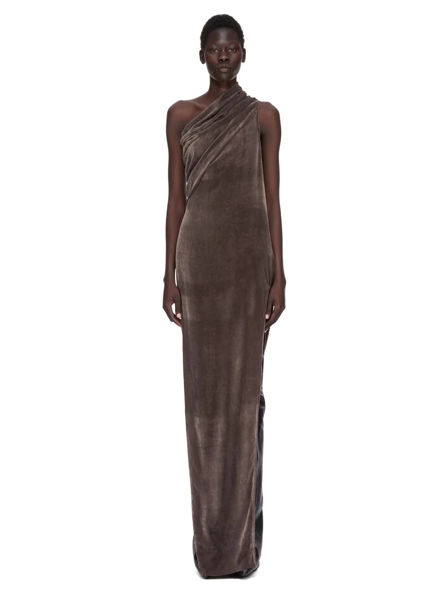 RICK OWENS FW25 CONCORDIANS ATHENA ARROWHEAD GOWN IN DARKDUST VELVET