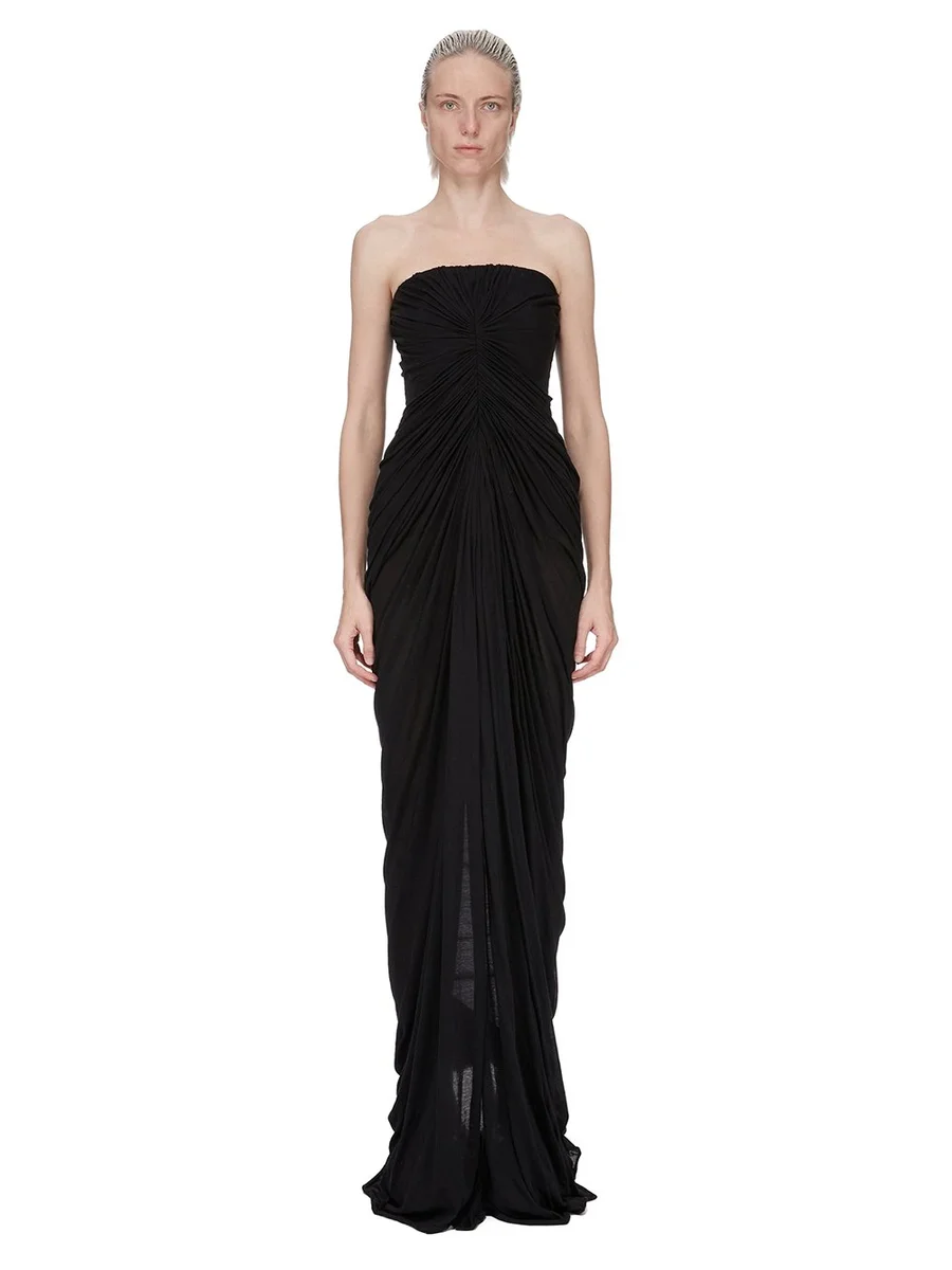 RICK OWENS FW25 CONCORDIANS RADIANCE BUSTIER GOWN IN BLACK UNSTABLE COTTON