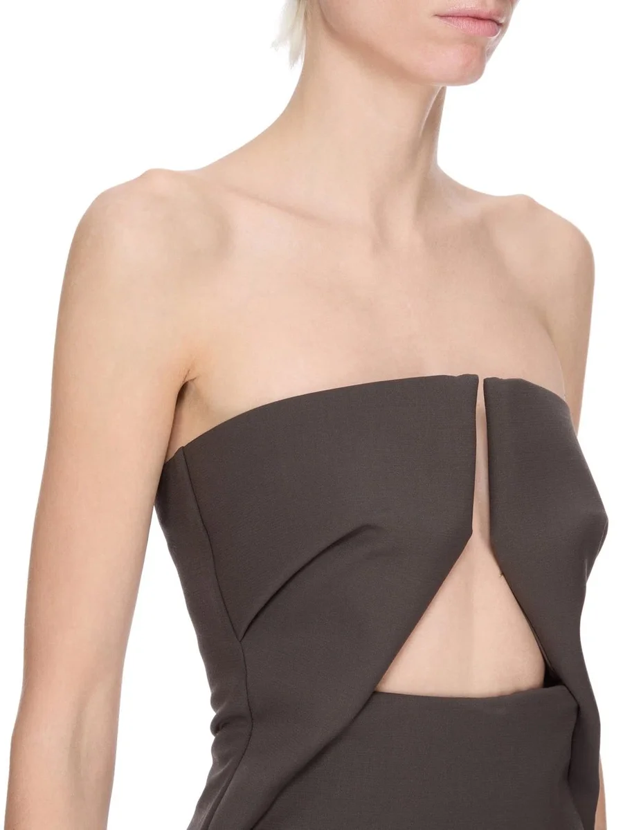 RICK OWENS FW25 CONCORDIANS PRONG GOWN IN DARKDUST STRETCH WOOL