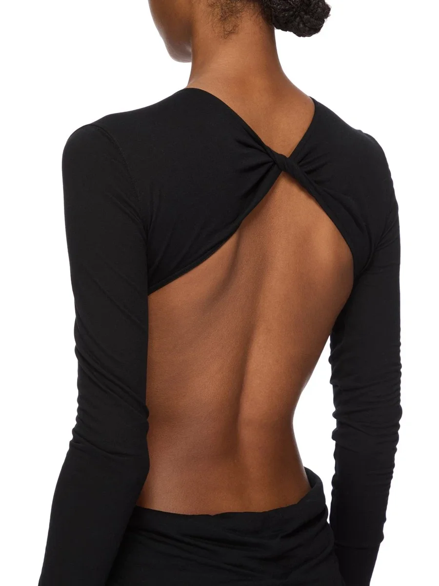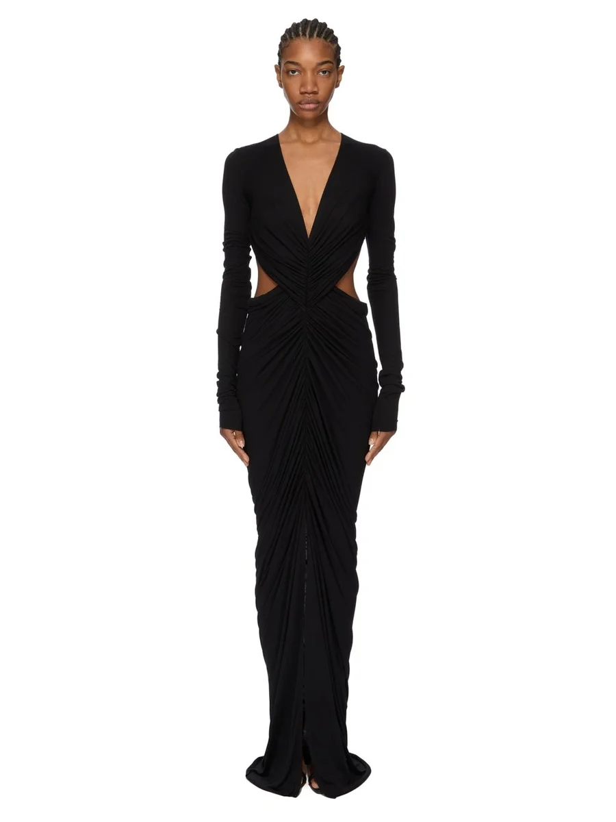 RICK OWENS FW25 CONCORDIANS POPPY LS GOWN IN BLACK FLUID VISCOSE JERSEY