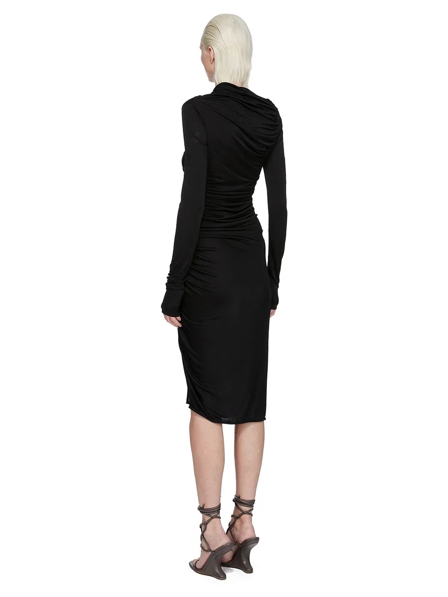 RICK OWENS FW25 CONCORDIANS SVITA LS DRESS IN BLACK SATIN VISCOSE JERSEY