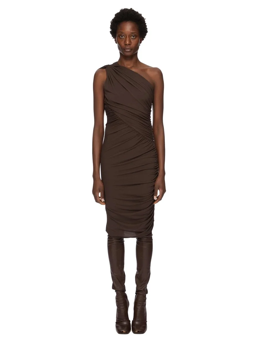 RICK OWENS FW25 CONCORDIANS AMIRA DRESS IN RAISIN VISCOSE CREPE JERSEY
